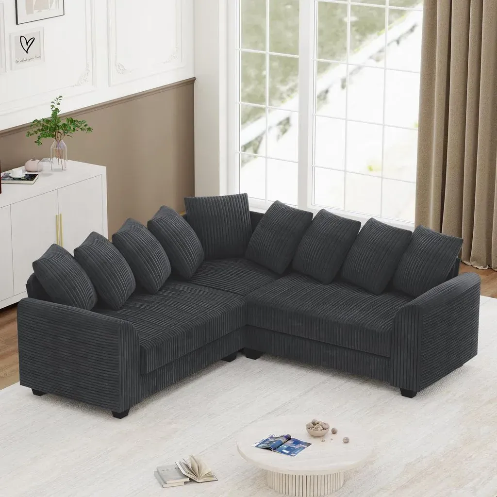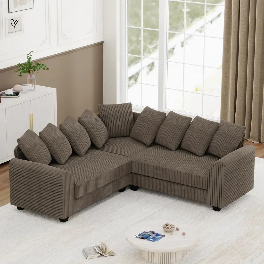 Kategorie: Sofas - modfu - GTIN:9331813042033 - Ergonomisches Design für maximalen Komfort-- Das U-förmige Sofa bietet zwei bequeme Liegepositionen und ein in Zonen unterteiltes Sitzdesign, das den Körper effektiv stützen kann. Stabilität trifft auf Langlebigkeit--Dieses Sofa verfügt über einen soliden Holzrahmen, der für hervorragende Stabilität sorgt und die Lebensdauer des Produkts verlängert, sodass Sie es viele Jahre lang verwenden können. Elegante Details mit goldenen Metallfüßen-- Die stilvollen 15 cm hohen goldenen Metallfüße verleihen dem Sofa nicht nur einen modernen Look, sondern können auch einfach mit einem Roboterstaubsauger gereinigt werden und sorgen so für Ordnung in Ihrem Zuhause. Platz für die ganze Familie-- Durch die breite U-Form eignet sich das Sofa ideal für gemeinsame Stunden egal ob beim Filmeabend oder entspannten Gespräch mit Freunden und Familie. Praktisch----Mit Liegepositionen auf beiden Seiten bietet dieses Sofa vielfältige Möglichkeiten zum Entspannen, sei es beim Fernsehen, Nickerchen oder einfach nur zum Zurücklehnen.Abmessungen & DetailsProduktname:EcksofasFarbe:Rosa Anzahl der Pakete:3Polstermaterial: ChenilleProduktgröße: 272 * 136 * 88 cmSitzfüllmaterial: SchaumstoffHinterfüllmaterial: Schaumstoff mit PolsterungGewichtskapazität: 500 PfundRahmenmaterial: SperrholzWaffen im Lieferumfang enthalten: JaGepolstertes Sitzkissen im Lieferumfang enthalten: JaBeinmaterial: EisenSitzhöhe: 51 cmRückenhöhe: 39 cmHandlaufhöhe: 62 ... ![]() ![]() okwish Ecksofa mit Rücken- & Zierkissen,Modulares Sofa aus weichem Cord,Relaxsofa für Wohnzimmer, Gästezimmer oder kleine Räume,Grau - Grau