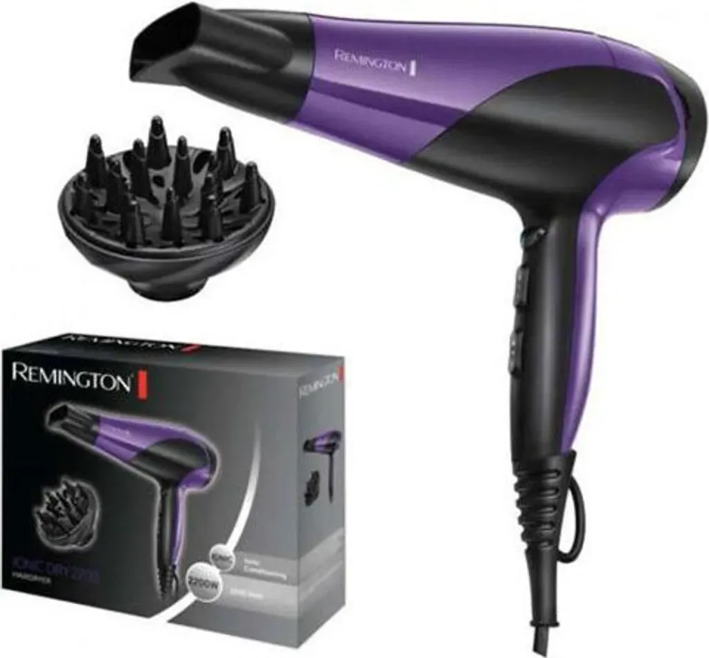 Auf Lager Versand durch AmazonRemington Haartrockner Ionen [leicht, Diffusor & Stylingdüse] schwarz (2200W, Keramik-Ionen: schonendes Styling & gleichmäßige Wärmeverteilung, 3 Heiz- & 2 separate Gebläsestufen + Abkühlstufe) D3198
