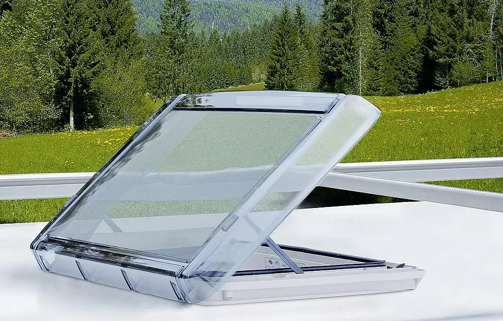 Kategorie: Caravan-Zubehör - REMIS - GTIN:4031701368942 - Dachhaube REMItop Vario II 40x40, mit Rastaufsteller Mit Doppelrollo für Verdunkelung und Insektenschutz Dachfenster mit stabiler Kunststoffrahmen-Konstruktion, Einbau längs und quer zur Fahrtrichtung möglich, integriertes, seit Jahren bewährtes Rollosystem, hervorragende Isolationseigenschaften dank doppelter Isolierscheiben aus getöntem Acryl, engmaschiges Insektenschutz-Rollo, wirksam auch im Randbereich. Mit Standard Rahmen ohne Lüfter. Komfortabel und leichtgängig Hoher Aufstellwinkel von 60 Für Reisemobile und Wohnwagen Für Dachstärken von 24-35 mm Kombirollo Verdunkelung + Insektenschutz Lieferumfang: 1 Dachhaube Remitop Vario II mit Rastaufsteller - 193,00 Euro bei husatech.de - gefunden von billiger.de Diese Dachhaube mit Handkurbel bietet Komfort und ist eine beliebte Option für die Standardgröße 400x400 mm. ![]() ![]() REMIS REMItop Vario II 400 x 400 mm mit Handkurbel