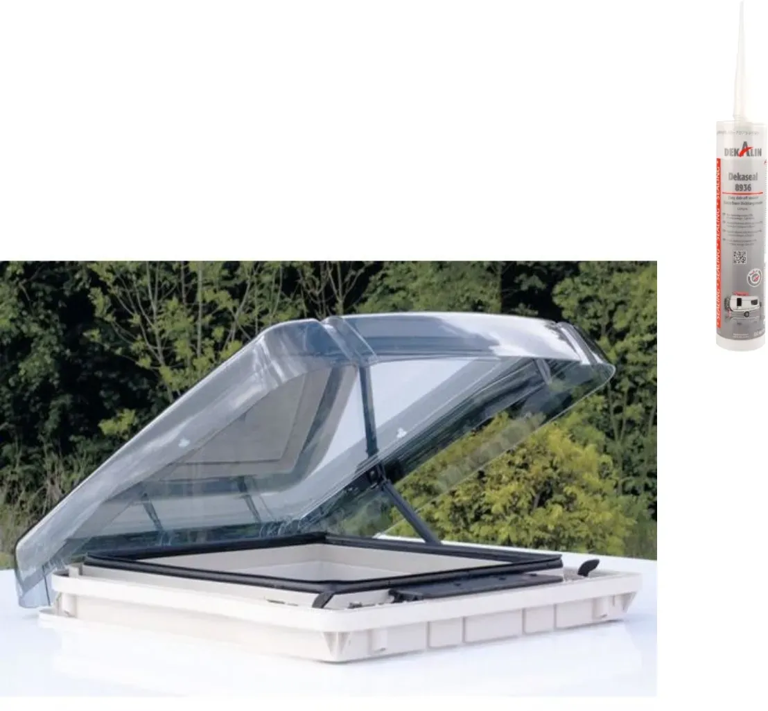Kategorie: Caravan-Zubehör - REMIS - GTIN:4055205385120 - Das ist ein Produkt-Set. Weitere Informationen zu den einzelnen Artikeln siehe bitte unter Setinhalt.Dachfenster für Reisemobile und Wohnwagen Ausgezeichnet als leiseste Dachhaube ihrer Klasse Integriertes Verdunkelungs- und Insektenschutzsystem Flacher Aufbau, strömungsgünstig und geräuscharm Getönte Isolierscheibe Einbau quer oder längs Einfaches und sicheres Bedienen mittels leichtgängiger Handkurbel Großer öffnungswinkel, bis 60 aufstellbar Mit Zwangsentlüftung (nicht verschließbar) Rahmenfarbe: Hellbeige Dachstärke: 24 - 35 mm Ausschnittmaß: 400 x 400 mm Gewicht: 4,8 kg DEKALIN DEKAseal 8936 Dichtmasse 310ml lichtgrau - 6250312 Dauerelastische Dichtmasse, hervorragend geeignet für die Abdichtung von Dachhauben, Fenster- und Kantengummis. Die Dachhaube REMItop Vario II überzeugt durch hohe Material- und Verarbeitungsqualität, ansprechendes Des... - 185,90 Euro bei CAMPING FACTORY - gefunden von billiger.de Dieses Angebot ist eine gute Wahl für alle, die eine Dachhaube mit Rastaufstellern in Standardgröße suchen. ![]() ![]() REMIS REMItop Vario II 400 x 400 mm mit 2 Rastaufstellern