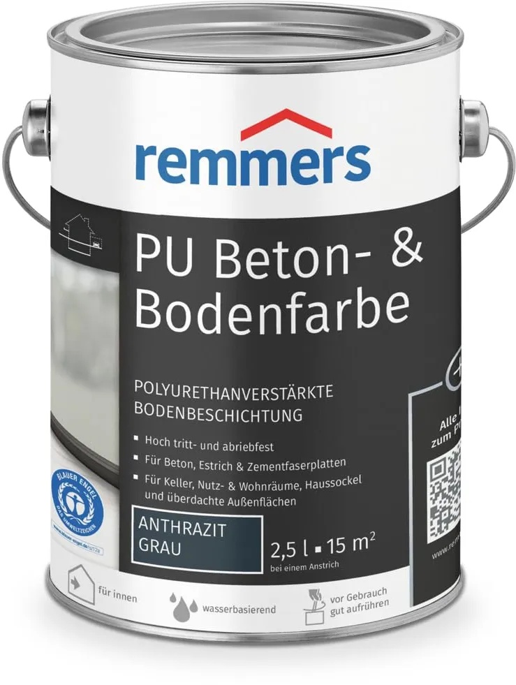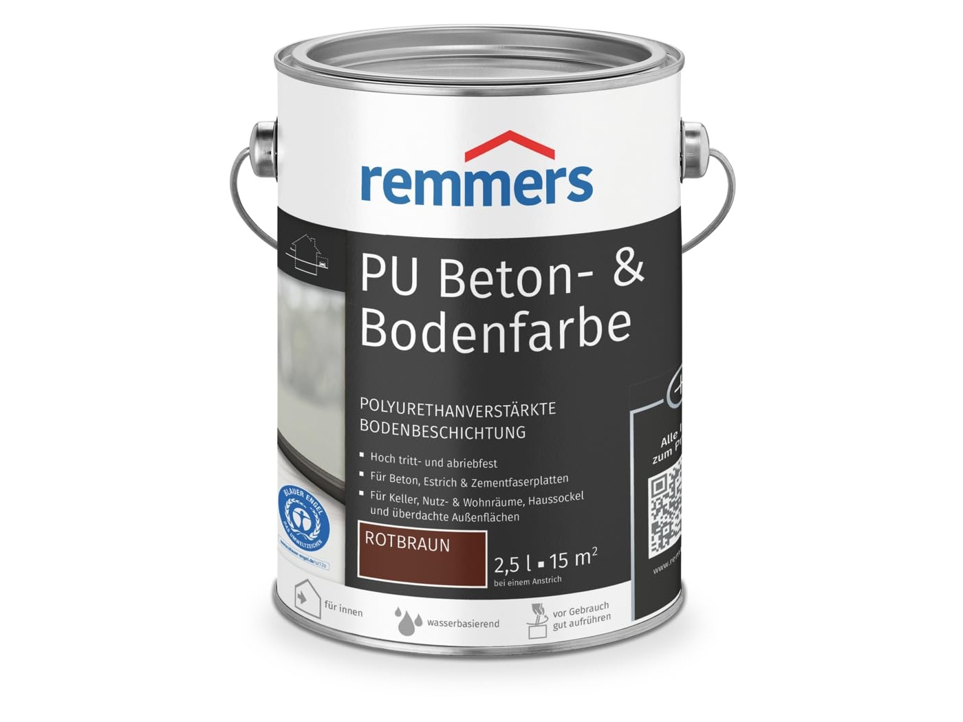 Kategorie: Farben & Lacke - Remmers - GTIN:4004707267410 - FüR INNEN UND AUSSEN - Remmers PU Beton- und Bodenfarbe eignet sich ideal für u.a. Keller- & Hobbyräume, überdachte Terrassen, Balkone mit Gefälle und als Sockelfarbe. FüR BETON, ZEMENTFASERPLATTEN ODER ESTRICH - Die Remmers PU Beton- und Bodenfarbe ist optimal auf Betonflächen, Estrich-Untergründe und Zementfaserplatten abgestimmt. SCHNELLE TROCKNUNG - Bereits nach 12 Stunden ist die Bodenfarbe überstreichbar. MADE IN GERMANY - Nach höchsten Sicherheits- und Qualitätsstandards in Deutschland produziert und abgefüllt. ACHTUNG: FüR GARAGENBöDEN NICHT GEEIGNET! - 34,00 Euro bei Amazon Marketplace Home Improvement - gefunden von billiger.de Eine weitere Option für kleinere Flächen in der Farbe Rotbraun. ![]() ![]() Remmers PU Beton- und Bodenfarbe, rotbraun, seidenmatt, 2,5 Liter, Betonfarbe, für Beton/Estrich/Zementfaserplatten, belastbar und chemikalienbeständig