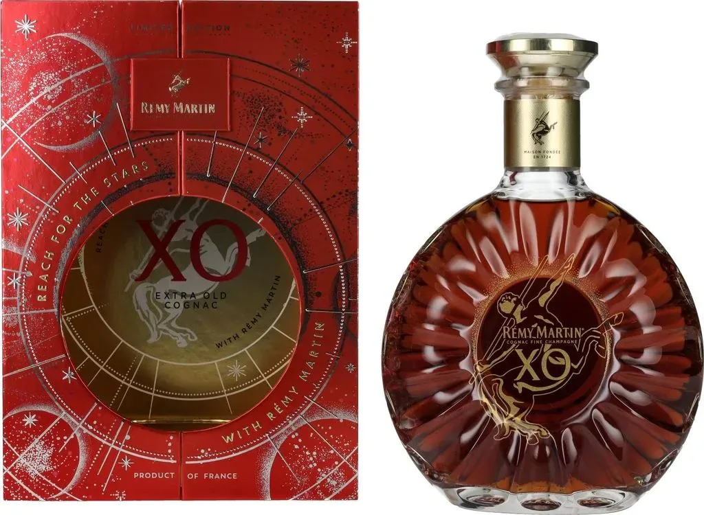 Verfügbarkeit: 6-8 Werktage - 245,57 €/l - Kategorie: Weinbrände - Remy Martin - GTIN:3024480018338 - Das Unternehmen Rémy Martin wurde im Jahr 1724 gegründet und ist ein Familienbetrieb. Das Haus von Rémy Martin liegt in dem französischen Bezirk Grande Champagne. Dieser Bezirk ist auch als Weinbaugebiet bekannt. Die Trauben für den Rémy Martin stammen aus Grande Champagne und Petite Champagne. br br Die Philosophie der Marke Rémy Martin ist gutes Teamwork und Innovation. br br br br Das Haus Rémy Martin präsentiert eine limitierte Kollektion von Geschenkverpackungen, inspiriert von den Sternen und gestaltet mit atemberaubenden, himmlischen Designs. br br br br Die diesjährige Edition von Rémy Martin begeistert mit Sternbildern und astrologischen Motiven, kunstvoll gestaltet in edlem Gold, Silber und Rot. Im Mittelpunkt steht der erlesene Rémy Martin XO, der in einer limitierten Flasche und einer exklusiven Sammlerkaraffe präsentiert wird. Die ikonische Glaskaraffe, verziert mit einem Zentauren-Motiv in edler goldener Serigrafie. br br br br Das elegante rote Coffret, ein wahres Designkunstwerk mit fein gearbeiteten Details in Gold und Silber, verfügt über ein zentrales Fenster, das den kostbaren Cognac stilvoll in Szene setzt. Durch einen raffinierten Schiebemechanismus öffnen sich die beiden Hälften des Coffrets und enthüllen die luxuriöse XO-Karaffe. br br br br Unter der Leitung von Baptiste Loiseau, dem Kellermeister des Hauses, ... Ein etwas höherpreisiges Standardangebot, das aber von einem vertrauenswürdigen Händler stammt. ![]() ![]() Remy Martin XO Extra Old Cognac 40,00% 0,70 Liter