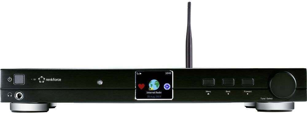 Renkforce - EAN: 4053199973484 - Moderne Technik trifft klassisches Design: Mit WiFi und DAB+ vereint das RF-DAB-IR 1700 das Beste an Radiotechnologie - für ein neues Hörerlebnis. Sie haben die Wahl: Verbinden Sie das Radio einfach mit dem vorhandenen WLAN-Router - schon befinden Sie sich musikalisch an einem anderen Ort der Erde. Oder empfangen Sie ihre lokalen Lieblingssender rauschfrei in bester digitaler Qualität über DAB+. Natürlich kann über 'Universal Plug and Play' (UPnP) die am PC gespeicherte Musiksammlung direkt in Ihr Wohnzimmer gestreamt werden. Dank dem integrierten Bluetooth verbinden Sie einfach Ihr Smartphone mit dem RF-DAB-IR 1700. Radioerlebnis 2.0 mit dem renkforce RF-DAB-IR 1700 Mit Radiowiedergabe über das Internet und DAB+ wird die rauschfreie übertragung von Radiosendern Wirklichkeit. Vorbei die Zeiten von quälenden Rauschen und Verzerrungen. Mit dem renkforce RF-DAB-IR 1700 holen Sie sich klaren Radioempfang ins Haus. Zusätzlich erhalten sie dank der modernen Internet-/DAB+ Radiotechnik weitere Informationen über den gerade abgespielten Sender, das aktuell gespielte Lied und auch die neuesten Nachrichtenschlagzeilen. Unbegrenzte Anzahl an Radiosendern Vorbei sind die Zeiten, in denen nur die regionalen Sender empfangen werden konnten. Jetzt empfangen Sie unzählige Sender weltweit über die Internetradio-Funktion in bester Qualität. Verbinden Sie einfach Ihr neues Radio Gerät mit Ihrem Router entweder drahtlos oder über die integrierte LAN-Buchse - ... ![]() ![]() Renkforce RF-DAB-IR1700 Radio-Adapter DAB+, UKW, Internet WLAN, LAN, Bluetooth, DLNA, Internetradio DLNA-fähig Schwarz