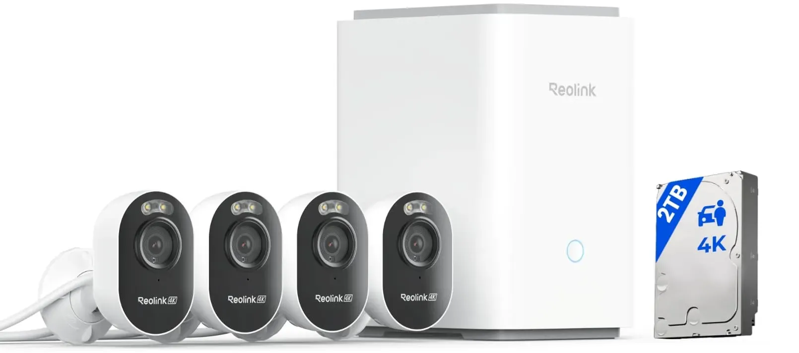 Kategorie: überwachungskameras - Reolink - NEXT-GEN WI-FI 6 STANDARD: Reolink Home Hub Pro und Lumus Pro unterstützen beide Wi-Fi 6, was schnellere übertragungen, stabilere Verbindungen und eine stärkere Signalqualität ermöglicht. Der Hub verfügt außerdem über einen integrierten Wi-Fi-Hotspot, sodass Bewegungsaufnahmen auch ohne aktive Netzwerkverbindung gespeichert und angesehen werden können. ALL-IN-ONE VERWALTUNGSPLATTFORM: Der Home Hub Pro ist die zentrale Steuereinheit für Speicherung, Alarm und Verwaltung. Er unterstützt bis zu 24 Kameras (max. 12 kabelgebundene) und ist mit Akku-, kabelgebundenen und PoE-Kameras sowie Türklingeln kompatibel (ausgenommen 4G-Produkte). Damit können Sie mühelos ein umfassendes Sicherheitssystem aufbauen. HOHE SPEICHERKAPAZITäT: Mit einer 2TB Festplatte, erweiterbar auf bis zu 16TB, bietet der Home Hub Pro 24/7 Aufzeichnungen ohne monatliche Gebühren. Dank der nationalen AES-128-Verschlüsselung sind Ihre Aufnahmen nur mit dem richtigen Code zugänglich, sodass Ihre Daten selbst bei einem Kameradiebstahl geschützt bleiben. 4K ULTRA HD FARBNACHTSICHT: Mit der F1,6-Superblende nimmt diese 8MP-Kamera doppelt so viel Licht auf wie Kameras mit F2,0-Blenden. Sie liefert lebendige Farbbilder selbst bei schlechten Lichtverhältnissen, während sechs leistungsstarke Infrarotlichter für eine klare und detaillierte Schwarz-Weiß-Nachtsicht sorgen. SMART-ERKENNUNG + BEWEGUNGSZONE: Dank fortschrittlicher Algorithmen erkennt die Kamera präzise Personen, ... Dieses High-End-Set mit 4K Wi-Fi 6 Kameras und 2TB HDD ist perfekt für professionelle Anwendungen und große Immobilien, die maximale Sicherheit erfordern. ![]() ![]() Reolink 4K Wi-Fi 6 überwachungskamera Set Aussen mit 2TB HDD, Erweitbar auf 16TB, Pan &Tilt & Auto-Tracking, 360 Blick, Anti-Diebstahl-Verschlüsselung, KI-Erkennung, Home Hub Pro+4 E1 Outdoor S
