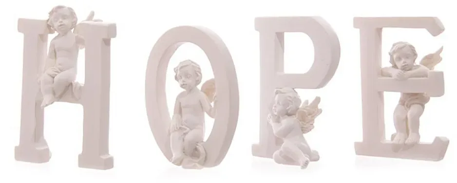 lieferbar-in 2-3 Werktagen bei dirPuckator Engelfigur Schriftzug HOPE mit Engeln aus Resin - Weihnachtsengel - Schutzengel (4 St), Höhe von 6,5-7,5 cm weiß