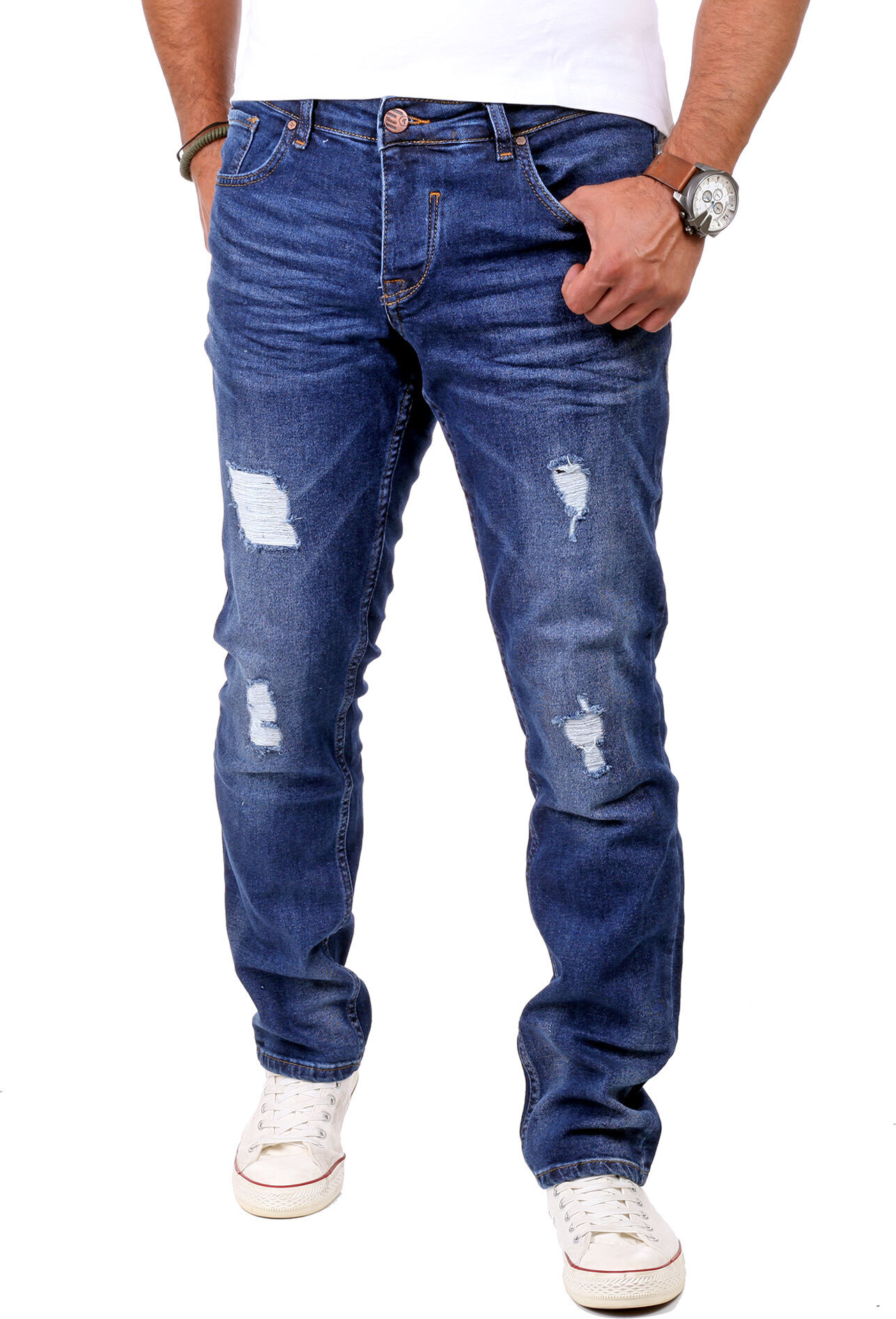 keine Angabe Nur noch 2 auf LagerReslad Jeans Herren Destroyed Look Slim Fit Denim Strech Jeans-Hose RS-2062 (W32 / L32, Dunkelblau (2090))