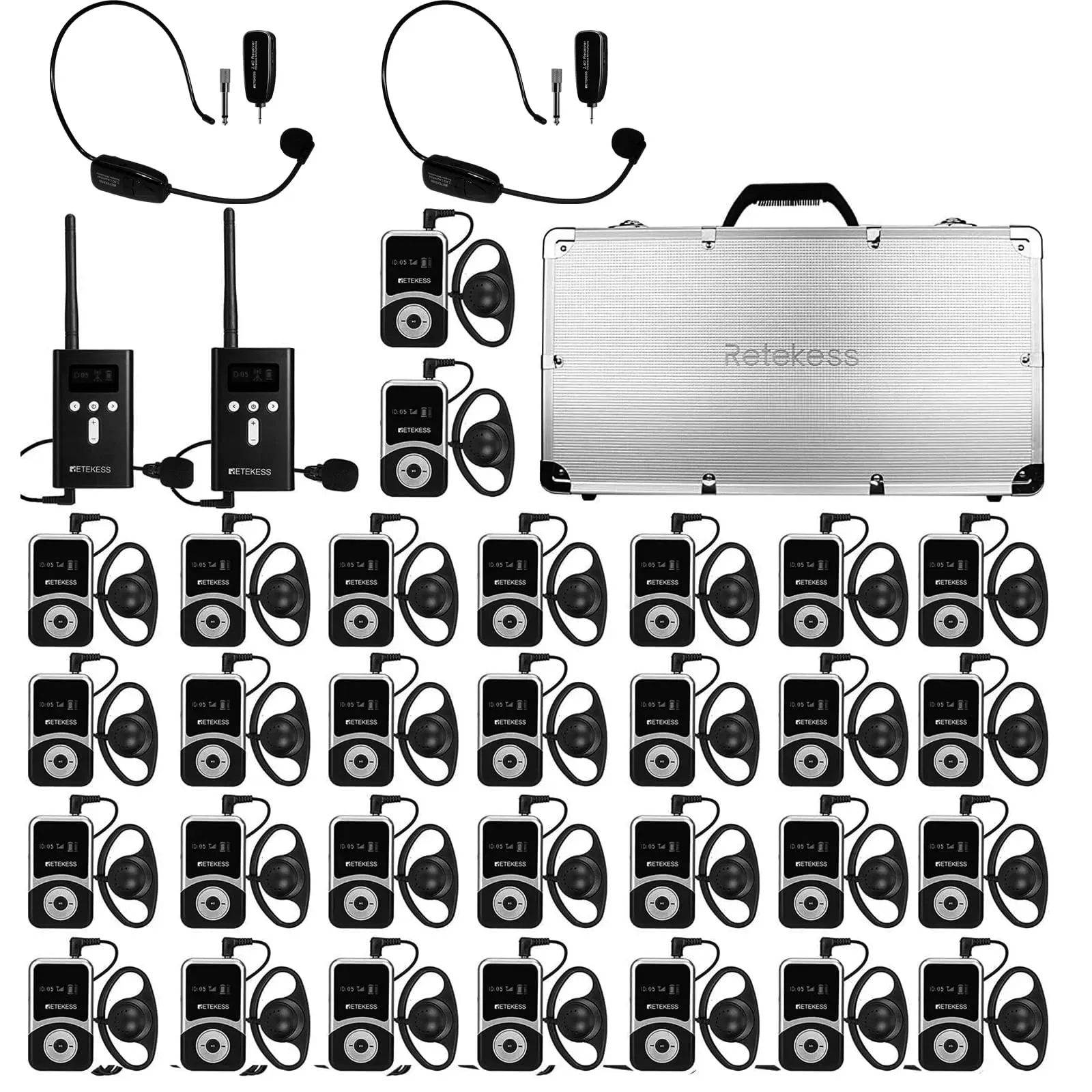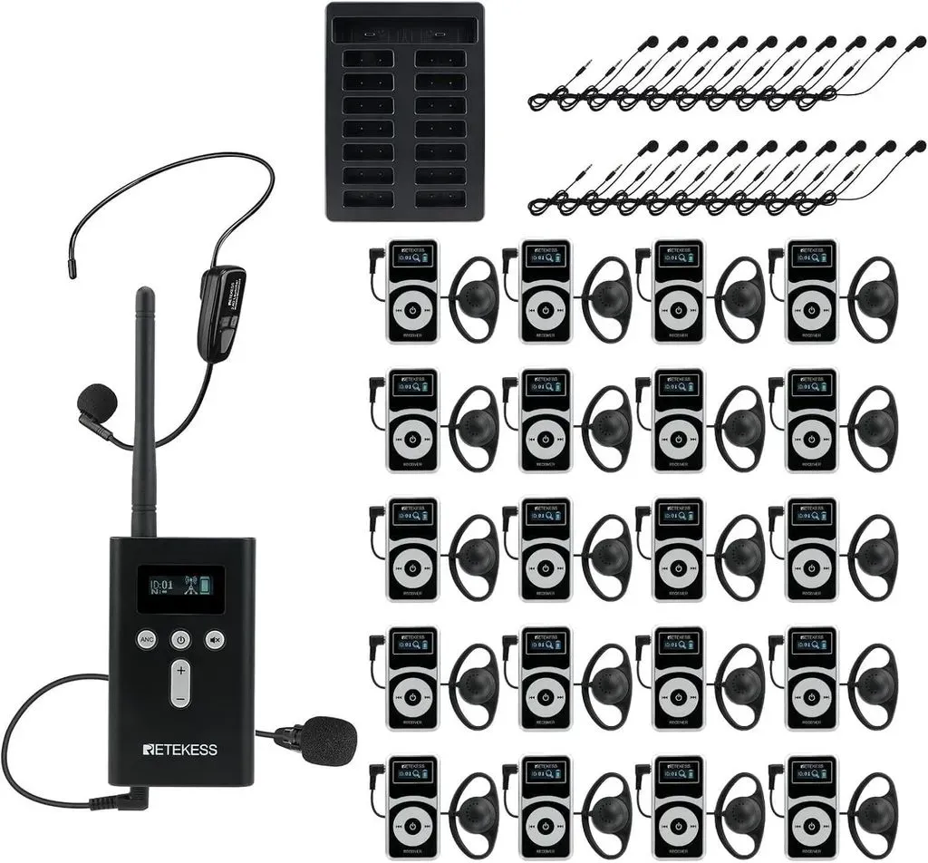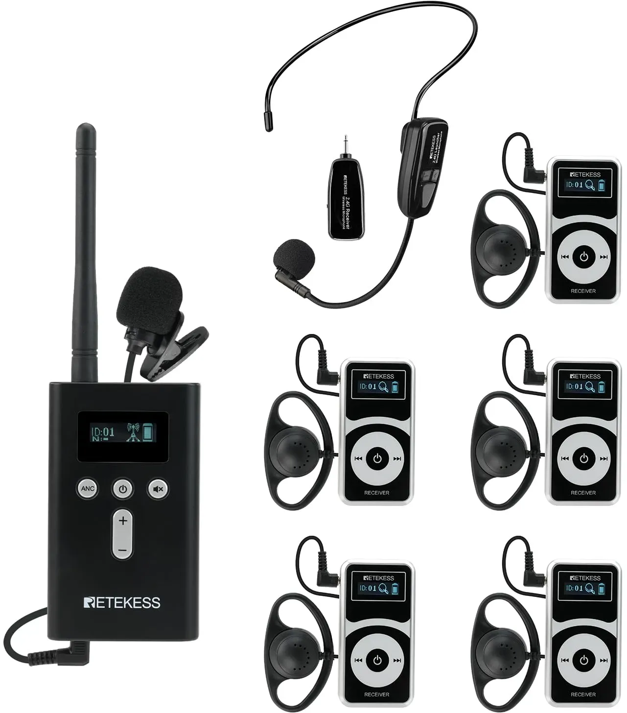 Auf Lager Versand durch AmazonRetekess T130S (T130 2rd) Audio-Tourguide-System, Kabelloses Tourguide-System, 100m, EIN-klick-Bedienung, Reiseleitersystem, Sprachdolmetschersystem für Tourismus, Fabrik (1 Sender, 5 Empfänger)