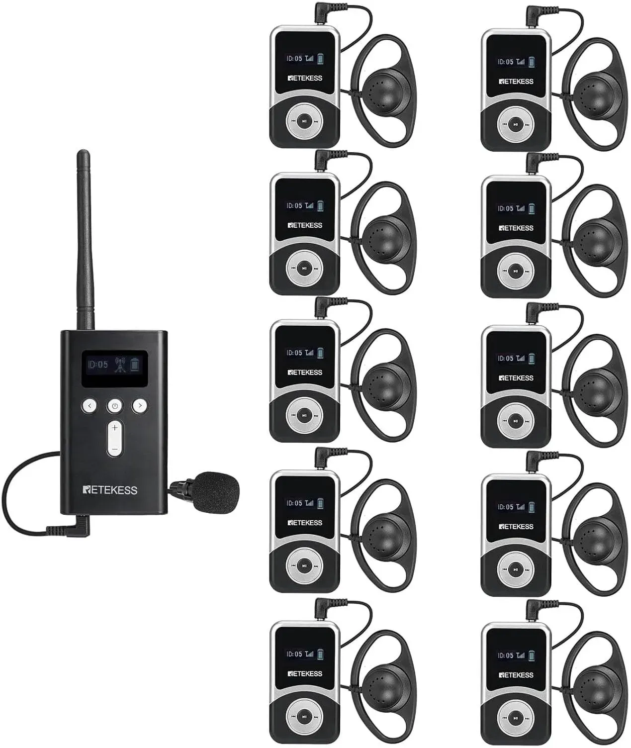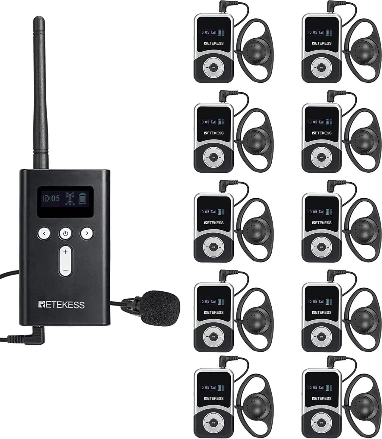 Auf Lager Versand durch AmazonRetekess T130S (T130 2rd) Kabelloses Tour Guide System, Drahtloses Reiseleitersystem, D-Kopfhörer, 100m, Dolmetscherausrüstung für Tourismus, Werksführungen, Schule (1 Sender, 10 Empfänger)