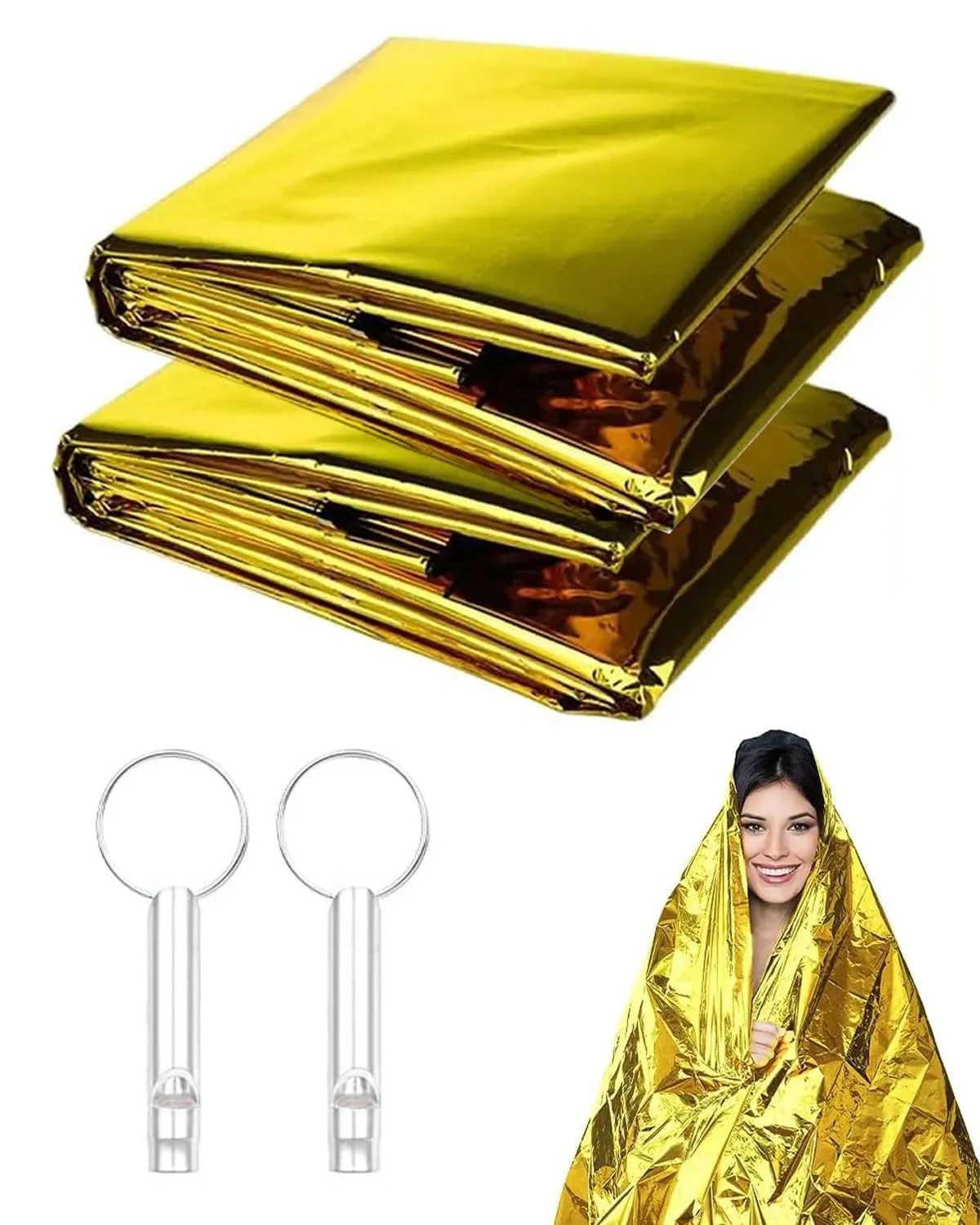 Auf Lager Versand durch AmazonFora Thermische Notfalldecken - Überlebenskit mit 10 Stück, 160×210 cm, Doppelseitig Gold/Silber, Ultraleicht und Kompakt