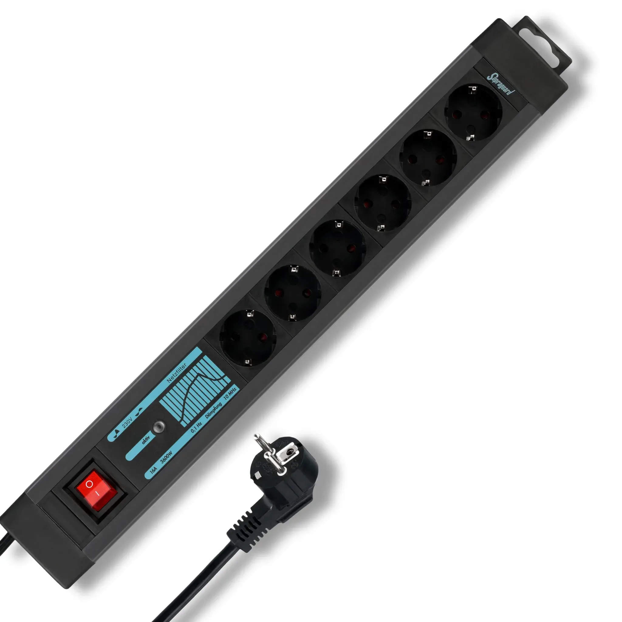 Kategorie: Steckdosen - REV Ritter - GTIN:4006341647726 - Robuste Verteilersteckdose 6fach - Gehäuse aus bruchfestem Kunststoff. 3 m Kabellänge - für eine mittlere, mechanische Beanspruchung. Ideal für den Einsatz zu Hause oder im Büro Starke Features - Mehrfachstecker mit quersitzenden Steckdosen, integriertem Netzfilter zum Abstellen von störenden Frequenzen in Bild und Ton, Kabelaufbewahrung & Befestigungsösen zur Wandmontage Maximale Sicherheit - Steckerleiste mit überspannungsschutz für alle Steckdosen. Alle Steckdosen mit Netzabtrennung. überspannungsschutz: Uc: 250V~, Up: 1,5kV, Uoc: 5kV, Typ 3, EN 61643-15 Auf Knopfdruck Strom sparen - Die 6er Steckdosenleiste verfügt über einen beleuchteten, zweipoligen Kippschalter, der es Ihnen ermöglicht, mit nur einem Knopfdruck alle Geräte auszuschalten Weitere Details - Kabel: H05VV-F 3G1,5 mm2, 230V~, 50Hz, 16A, 3500W. Ableitstrom 30.000A. Isolationswiederstand 10 Gohm. Abm. Mehrfachsteckdose 3m (LxBxH): 486 x 70 x 42 mm. Gewicht: 1kg - 32,85 Euro bei Amazon Marketplace CE - gefunden von billiger.de Diese 6-fach Geräteschutzleiste ist eine solide Wahl für den Schutz Ihrer Elektronik zu einem fairen Preis. ![]() ![]() REV Supraguard Geräteschutzleiste 6-fach, schwarz /anthrazit, 6-fach Steckdosenleiste mit überspannungsschutz (0015653513)