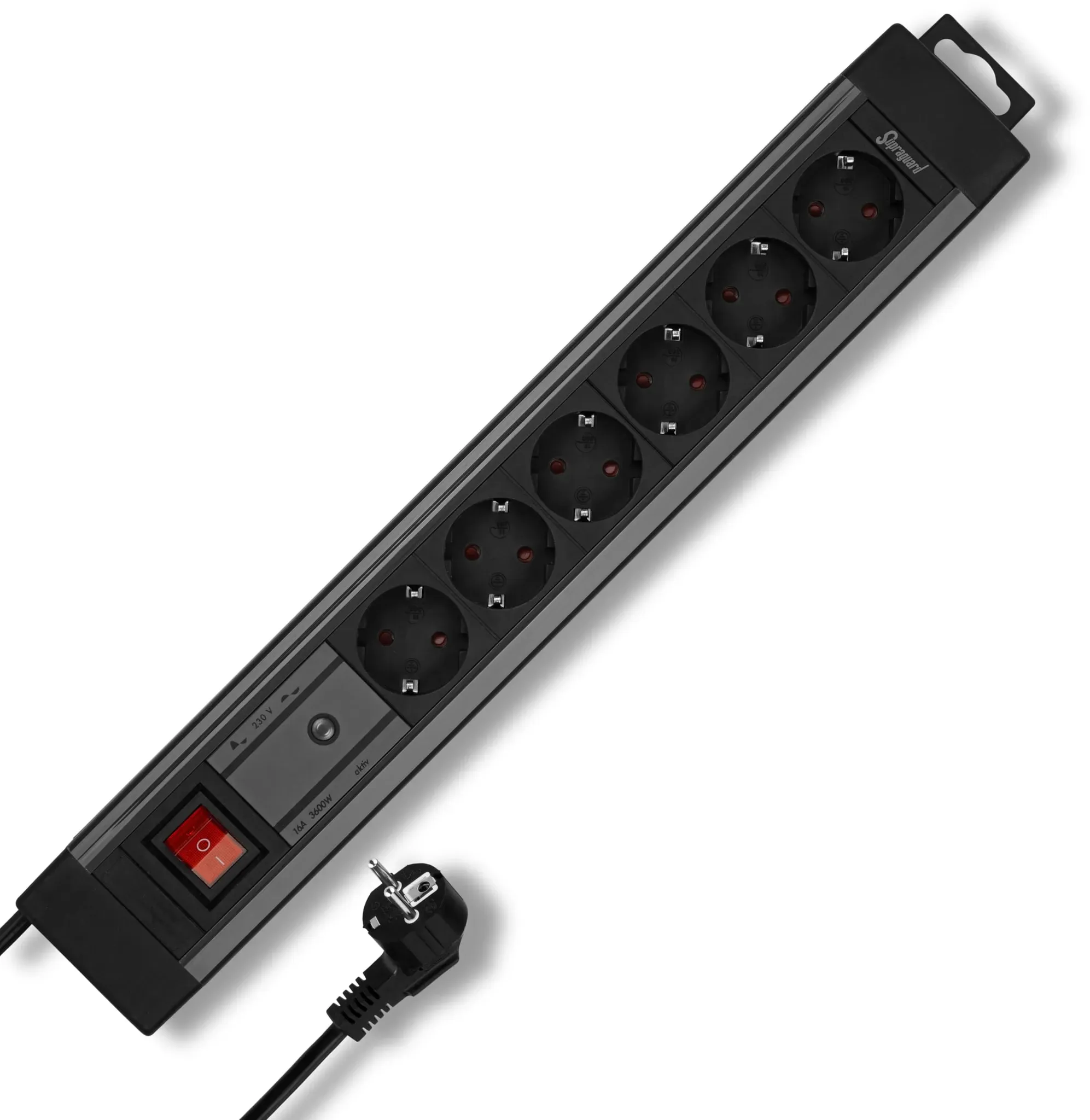 Kategorie: Steckdosen - REV Ritter - GTIN:4006341647665 - Robuste Verteilersteckdose 6fach - Gehäuse aus bruchfestem Kunststoff. 2,8 m Kabellänge - für eine mittlere, mechanische Beanspruchung. Ideal für den Einsatz zu Hause oder im Büro Starke Features - Mehrfachstecker mit quersitzenden Steckdosen, praktischer Kabelaufbewahrung & verdeckten Befestigungsösen auf der Rückseite zur Wandmontage Maximale Sicherheit - Steckerleiste mit überspannungsschutz für alle Steckdosen. Alle Steckdosen mit Netzabtrennung. überspannungsschutz: Uc: 250V~, Up: 1,5kV, Uoc: 5kV, Typ 3, EN 61643-15 Auf Knopfdruck Strom sparen - Die 6er Steckdosenleiste verfügt über einen beleuchteten, zweipoligen Kippschalter, der es Ihnen ermöglicht, mit nur einem Knopfdruck alle Geräte auszuschalten Weitere Details - Kabel: H05VV-F 3G1,5 mm2, 230V~, 50Hz, 16A, 3500W. Ableitstrom 30.000A. Isolationswiederstand 10 Gohm. Abm. Mehrfachsteckdose 3m (LxBxH): 443 x 70 x 42 mm. Gewicht: 947g - 32,16 Euro bei Amazon Marketplace CE - gefunden von billiger.de Eine 6-fach PC-Steckdosenleiste, die speziell für Computer-Setups geeignet ist und einen guten Schutz bietet. ![]() kaufland.d e REV Supraguard PC-Steckdosenleiste 6-fach, schwarz, 00176671 / 0015663513
