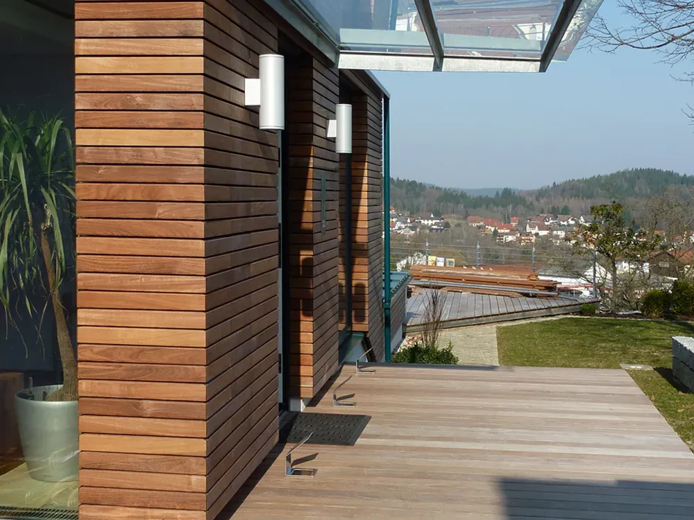 Kategorie: Sonstige Elektroinstallationsartikel - übersicht: Falls Sie eine ästhetische und dauerhafte Lösung für Ihre Fassadenbekleidung oder den Bau einer Sichtschutzwand suchen, sind Rhombusleisten aus Ipe die ideale Wahl. Ipe, stammend von dem brasilianischen Lapacho-Baum, gehört zu den härtesten Holzarten weltweit und bietet dadurch eine exzellente Langlebigkeit. Seine außergewöhnliche Widerstandsfähigkeit gegen Wettereinflüsse, Insekten und Pilzbefall macht es zu einem bevorzugten Material im Außenbereich. Dank seiner hohen Dichte ist Ipe kaum anfällig für Feuchtigkeitsaufnahme, was zu lediglich einer minimalen Veränderung des Holzes führt. Rhombusleisten aus Ipe bestechen nicht nur durch ihre Haltbarkeit, sondern auch durch ihre optische Attraktivität. Die einzigartig olivfarbene Tönung und die feine, gleichmäßige Textur veredeln jede Anwendung mit einem Hauch von Luxus. Ipe-Holz bietet eine vielfältige Farbpalette, die von Gelb und Grün über Hell- und Dunkelbraun bis hin zu Tiefschwarz reicht, und ist somit eine der optisch vielseitigsten Holzarten für den Außeneinsatz. Einsatzmöglichkeiten von Ipe Rhombusleisten sind vielfältig und beinhalten: - Sichtschutz - Verkleidungen für Fassaden - Terrassendielen - Bau von Zäunen und Balkonen - und viele weitere. Montage: Bei der Installation von Ipe Rhombusleisten ist die Verwendung von rostfreiem Edelstahl (V2A oder V4A) entscheidend, um chemische Reaktionen und daraus resultierende Verfärbungen zu verhindern, die bei ... Dieses Angebot bietet Kebony Character Rhombusleisten für 6,96 Euro pro Leiste, ein nachhaltiges und modifiziertes Holz mit hoher Dauerhaftigkeit. ![]() ![]() Kebony Character Rhombusleisten, 29x59 mm, Kanten gerundet, gehobelt, 12 Schräge