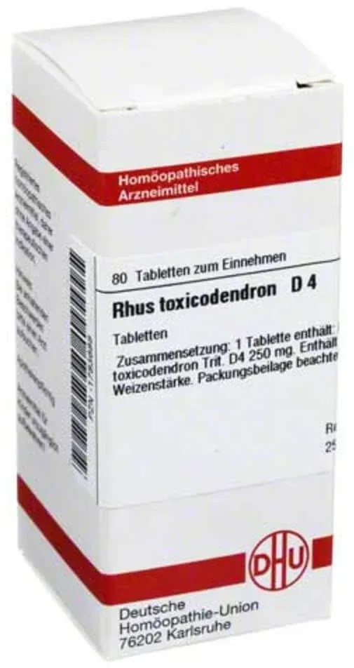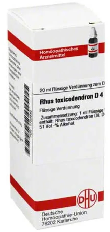 599.50 eur / 1l - 'Arzneimittel-Gesundheit Homöopathie & Natur Homöopathische Einzelmittel' Medizin & Heilmittel - EAN:4150017835822 - RHUS Toxicodendron D 4 DilutionRHUS Toxicodendron D 4 Dilution ist ein Produkt der DHU-Arzneimittel GmbH & Co. KG. Es handelt sich um eine homöopathische Flüssigkeit, die nach dem Prinzip der Potenzierung verdünnt wurde.AnwendungshinweiseVor der Anwendung sollte die Packungsbeilage sorgfältig gelesen werden. Bei Fragen zur Anwendung kann ein Arzt oder eine Ärztin sowie Apotheker oder Apothekerin konsultiert werden. - gefunden von Kelkoo Diese Tabletten sind eine weitere solide Option von DHU und bieten ein gutes Preis-Leistungs-Verhältnis. Medpex.de DHU-Arzneimittel GmbH & Co. KG RHUS Toxicodendron D 4 Tabletten 80 St