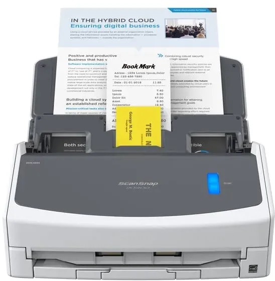Ricoh - EAN: 4939761311833 - . Scanauflösung bis 600dpi und Scangeschwindigkeit von 40 Seiten/Min. bzw. 80 Bildern/Min. . Mit Duplex-Funktion zum Scannen von Vorder- und Rückseite in einem Scanvorgang . Automatischer Dokumenteneinzug (ADF) für bis zu 50 Blatt . Per USB 3.2 verbinden und direkt an PC scannen . Scannt Standardgrößen DIN A4, A5, A6, B5 und B6, benutzerdefinierte Größen von min. 5,08 x 5,08cm bis max. 21,6 x 36cm und Papierstärken von 40 g/m bis 209 g/m . Mit gesonderter Zuführung für Quittungen, Visitenkarten und Postkarten . Manuelle Zufuhr mit optionaler Trägerfolie ermöglicht die Digitalisierung der Formate B4 und A3 . Mit Ultraschallsensor zur Verhinderung von Doppelblatteinzug und automatischen Bildverarbeitungsfunktionen wie z.B. Größen-, Farb- und Leerseitenerkennung . Verwendet die gängigen Dateiformate JPEG, PDF, durchsuchbare und passwortgeschützte PDF sowie PDF/A (nur Windows) . Inkl. All-in-One Scan-Software ScanSnap Home und ScanSnap Manager sowie ABBYY FineReader für OCR und effiziente Dokumentenverwaltung . Unterstützt Betriebssysteme ab Windows 10 und macOS 10.15 oder neuer . Zuverlässige Stromversorgung über Netzanschluss mit mitgeliefertem Netzteil . Kompaktes Design mit Abmessungen von 29,2 x 16,1 x 15,2cm (BxTxH) und einem Gewicht von 3,2kg . Hersteller ab Kaufdatum nach erfolgter kostenloser Online-Registrierung Merkmale: Ausführung: Dokumentenscanner, Fotoscanner, Kartenscanner Funktionen: Duplex Schnittstellen: USB Format: A4 (21 x ... Office Partner GmbH bietet den Scanner für 299.99 Euro an, was ein solides Angebot für diesen beliebten Scanner ist. ![]() ![]()