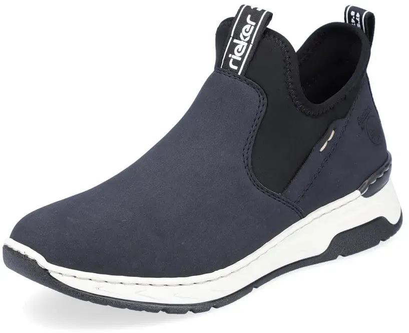 Zustand: Neu - Sneaker Damen-Sneaker - Rieker Rieker Schuh GmbH - 45957 45957-00 - EAN: 4061811157242 - Produkttyp: Kurzstiefel,Halbschuhe,Slip-On Sneaker,Damenschuhe,Halbschuhe,Straßenschuhe,Freizeit,sportlich Obermaterial: Kunstleder, Innenmaterial: Textil, Laufsohle: PU-Sohle, Decksohle: Leder Absatztyp: Keilabsatz, Absatzhöhe: 3.5 cm, Schafttyp: Kurzschaft, Schafthöhe: 8 cm Weite: Normal (F 1/2), Verschluss: Ohne Verschluss - Verkäufer: Trendbereich, Preise inkl. MwSt. im amazon.de Marketplace ![]() ![]() Rieker Damen Slip-On Sneaker M0053, Frauen Halbschuhe, lose Einlage,schnellschnürung,straßenschuhe,Strassenschuhe,blau Kombi (14),37 EU / 4 UK - 37 EU