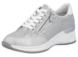 Kategorie: Sneaker - Rieker - GTIN:4061811221516 - RIEKER Sport Slip-On Sneaker aus Textil/Lederimitat, Maßangaben: Absatzhöhe: 3 cm, Farbe: Farbbezeichnung: schwarz, Optik: unifarben, Material: Obermaterial: Lederimitat, Textil, Obermaterialart: Strick, Innenmaterial: Textil, Optik/Stil: Applikationen: Logoprägung, Details: Besondere Merkmale: , Schlupfschuh, Halbschuh, Freizeitsneaker mit Anziehlaschen, Verschluss: Gummizug, Schnellverschluss, Verschlussdetails: elastisch, Schuhspitze: rund, Sohle: Innensohlenmaterial: Textil, Innensohleneigenschaften: gepolstert, Dämpfungstechnologien: rieker. MemoSoft, Laufsohlenmaterial: Gummi, Laufsohleneigenschaften: rutschhemmend, Laufsohlenprofil: leicht profiliert, Passform/Schnitt: Schuhhöhe: niedrig, Schuhweite: Normal (Weite F) - 36,46 Euro bei baur.de - gefunden von billiger.de Ein preiswerter Damen-Sneaker in Weiß/Silber, der eine gute Balance zwischen Stil und Budget bietet. ![]() ![]() Rieker Frühjahr/Sommer, Damen Sneaker, Weiß (Weiss/Fog-Silver/ 81 40 EU (6.5 UK)