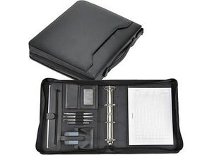 Schreib-, Konferenzmappen aus sonst. M. Sonstige - EAN:4015468107426 - Perfekt organisiert in die Konferenz - mit der GENIE Ringbuchmappe ExclusiveMit der Ringbuchmappe Exclusive von GENIE haben Sie alles dabei, was Sie im Meeting benötigen. Dafür bietet Ihnen die elegante schwarze Ringbuchmappe aus Lederimitat 5 Visitenkartenfächer, eine Stifteschlaufe für Ihr Schreibgerät, ein A4-Dokumentenfach für die Agenda oder andere wichtige Unterlagen, ein Einsteck- und ein CD-Fach. Ringmechanik zum Abheften Ihrer UnterlagenDie 4-Rund-Ring-Mechanik ist perfekt geeignet, um passende Klarsichthüllen im DIN A4-Format in der Ringbuchmappe Exclusive abzuheften. So verstauen Sie Dokumente und Unterlagen, die Sie während der Konferenz erhalten oder austeilen möchten, sicher und ungelocht in der Mappe. Da die Ringbuchmappe mit einem umlaufenden Reißverschluss sicher verschlossen werden kann, geht auch keines der Dokumente verloren.Ein praktisches Extra ist ein herausnehmbarer Taschenrechner, 8-stellig. Dieser gibt Ihnen Sicherheit bei schnellen Berechnungen.Edler Look und doch so pflegeleichtDie GENIE Ringbuchmappe Exclusive ist aus edlem schwarzem Lederimitat gefertigt und sieht stets gepflegt aus. Denn dieses Material ist kaum von Leder zu unterscheiden, aber leicht zu reinigen und sehr robust. Mit Maßen von 27,5 x 4,5 x 35,0 cm (BxTxH) können Sie die Mappe bequem unter den Arm klemmen und damit zum nächsten Meeting aufbrechen. Damit werden Sie rt einen gut organisierten Eindruck ... Diese braune Ringbuchmappe aus Lederimitat bietet eine klassische und stilvolle Option. Bueroplus. de Alassio Ringbuchmappe VITERBO Lederimitat DIN A4 braun