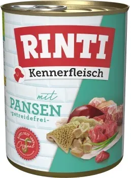 6 Händlerangebote bei billiger.de - Kategorie: Hundefutter - Rinti - Rinti Kennerfleisch Pure Fleischstücke wie frisch gemacht Rinti Kennerfleisch ist Fleisch ohne Kohlenhydrate Getreide undoder Soja. Ohne Konservierungsstoffe ohne Formfleisch ohne Fleischmehle und ohne tierische Nebenerzeugnisse zubereitet. So ernähren Sie Ihren Hund optimal und artgerecht. Pures Fleisch in voller Stückigkeit angereichert mit Vitaminen und Mineralstoffen sowie Flachsöl und Rübenfasern macht Kennerfleisch zur wertvollen und hochwertigen Vollnahrung für Ihren Hund. Rinti Kenner... - GTIN:4000158910745 Ein sehr günstiges Angebot für Rinti Kennerfleisch Pansen, das eine gute Option für Hunde mit speziellen Ernährungsbedürfnissen darstellt. ![]() ![]() Rinti Kennerfleisch Pansen 24 x 800 g