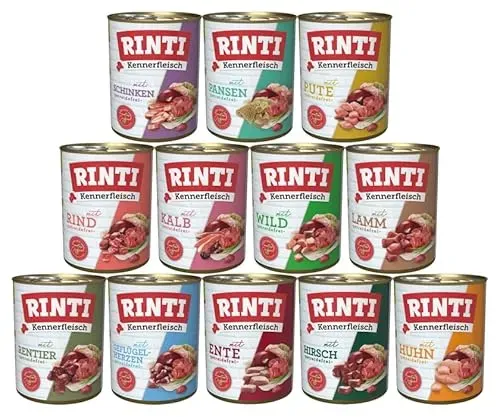 EUR3,33 / 1kg - Der angezeigte Preis könnte seit dem letzten Update gestiegen sein - EAN: 4000158826510 - Jetzt zugreifen und Vorrat anlegen! RINTI Kennerfleisch ist ein ausgewogenes Hundefutter, welches der artgerechten Ernährung deines Hundes entspricht. Der Hund ist von Natur aus ein Fleischfresser, sein Verdauungstrakt ist darauf abgestimmt. Sein... - Zustand: NEW - bei zooplus.de - gefunden von Buycentral Dieses 12er-Mixpaket bietet eine gute Vielfalt an Sorten, um Abwechslung in den Napf zu bringen. ![]() ![]() RINTI-Kennerfleisch 12 x 800g Mixpaket | 10 garantierte Sorten | getreidefreies Nassfutter mit 70% Fleisch & Innereien | ohne Soja | Hundefutter