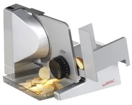 Kategorie: Allesschneider - Ritter - GTIN:4004822554709 - Ritter solida 4. Typ des Schneiders: Elektro, Scheibendicke (max): 2,3 cm, Produktfarbe: Silber. Leistung: 65 W, AC Eingangsspannung: 230 V. Breite: 255 mm, Tiefe: 375 mm, Höhe: 250 mm - 165,55 Euro bei voelkner Marktplatz - gefunden von billiger.de Diese elektrische Allzweck-Schneidemaschine ist ideal für dünne Scheiben und verschiedene Lebensmittel. ![]()