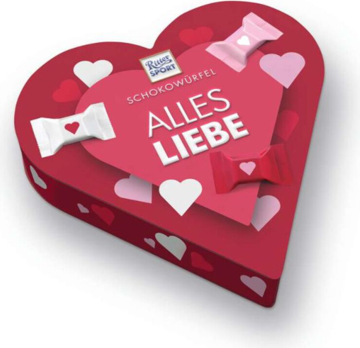 EAN: 4000417600103 - Ritter Sport Mini Schokowürfel Mischung Herzbox Packung 119gDie Ritter Sport Mini Schokowürfel in der Herzbox sind die perfekte Kombination aus leckeren Schokoladenhäppchen und liebevoller Präsentation. Die 119 g Packung enthält eine abwechslungsreiche Mischung aus gefüllten Mini-Schokowürfeln in verschiedenen Sorten, verpackt in einer dekorativen Herz-Geschenkbox ideal zum Verschenken, Danke sagen oder einfach, um Freude zu machen.Warum die Ritter Sport Herzbox?Weil sie Vielfalt, Geschmack und Emotion vereint. Ob als süße Aufmerksamkeit zum Valentinstag, Muttertag oder Geburtstag die Herzform spricht von Herzen, während die beliebten Ritter Sport Füllungen wie Nuss-Nougat, Karamell, Mandel, Joghurt u. v. m. für echten Schokoladengenuss sorgen.Produktdetails im überblick119 g Packung mit Mini-Schokowürfeln in verschiedenen SortenGefüllt mit cremigen, knackigen und fruchtigen HighlightsIn dekorativer Herz-Geschenkbox perfekt zum VerschenkenBunte Mischung für Naschspaß mit AbwechslungIdeal als kleine Geste, Liebesgruß oder Mitbringsel mit StilFür wen ist die Ritter Sport Herzbox geeignet?Für Partner:innen, Mütter, Freund:innen, Kolleg:innen oder jeden Lieblingsmenschen, dem du mit einer kleinen, aber hochwertigen Schoko-überraschung ein Lächeln schenken möchtest.Beste EinsatzmöglichkeitenPerfekt für Valentinstag, Muttertag, Geburtstage, Wichtelgeschenke, Präsentkörbe oder als süße Beigabe zu Blumen und Grußkarten.Jetzt Ritter Sport Mini Herzbox kaufen ... Für 21,95 Euro erhalten Sie hier 130 Ritter Sport Quadretties Schokotäfelchen, eine große Menge für den Vorrat. ![]() ![]() Ritter Sport - Quadretties Schokotäfelchen eBay 130 Stück Schokolade Mini Minis 994g