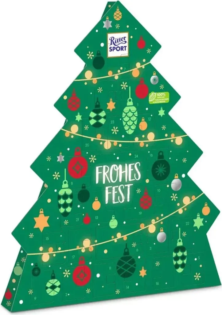 Verfügbarkeit: 1-2 Werktage - 109,05 €/kg - Kategorie: Adventskalender - Ritter Sport - GTIN:4262406847368 - Mit dem Adventskalender von Ritter Sport, kannst Du dich bis Weihnachten jeden Tag mit einem leckeren Schokowürfel überraschen lassen und an Weihnachten und Nikolaus erwartet Dich oder Euch gleich die dopplte überraschung. Gönn Dir diesen schönen Adventskalender mit 26 einzeln verpackten Schokowürfeln, oder verschenke ihn an deine Familie oder Freunde. Mit dabei sind folgende Sorten: Edelnugat, Joghurt, Schoko Crisp,a la Mousse au Chocolat, Zimt-Nugatcreme, Winter-Mandel-Mousse & Voll-Nuss in Nugatcreme Durchschnittliche Nährwerte je 100 g Brennwert 2372Kj/569kcal Fett 37g, davon gesättigte Fettsäuren 19g Kohlenhydrate 50g, davon Zucker 49g Eiweiß 7,1g Salz 0,22g Ritter Sport Schokowürfel Adventskalender Weihnachtstanne 208g Inhaltsstoffe: Zucker, Kakaobutter, Palmfett, VollMILCHpulver, Kakaomasse, HASELNUSSmasse, MagerMILCHpulver, LAKTOSE, BUTTERreinfett, MagerMILCHjoghurtpulver, HASELNüSSE, MANDELN (gemahlen), magerer Kakao, Emulgator: Lecithine (SOJA), SAHNEpulver, HASELNüSSE (gehackt), WEIZENmehl, Zimt, Reis, WEIZENmalz, WEIZENstärke, Gewürze, Salz, GERSTEnmalzextrakt. Allergene: Gluten, Milch, Schalenfrüchte, Soja Spuren: Sellerie, Senf, Schalenfrüchte, Erdnüsse, Sesam, Sulfiten und Ei. - 22,90 Euro bei Kaufland.de - gefunden von billiger.de ![]() Ritter Sport Nussklasse Dunkle Voll-Nuss 100 g, 10er Pack