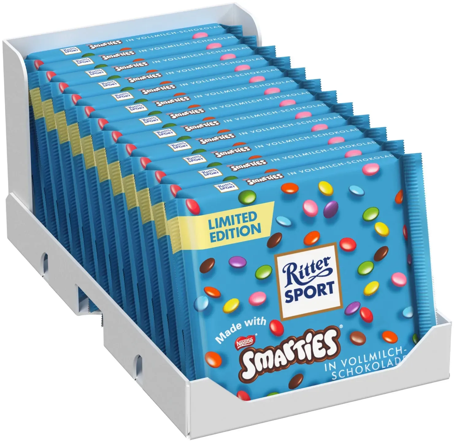 Verfügbarkeit: 8 Werktage - 19.90 / kg - Kategorie: Kräuter & Gewürze - Ritter Sport - GTIN:4000417601568 - Ritter Sport Amicelli 100 g, 12er Pack €“ Zartschmelzender Genuss mit knuspriger Waffel Feinste Schokolade trifft auf knusprige Waffel: Der Ritter Sport Amicelli 100 g Riegel vereint cremige Haselnussfüllung mit einer hauchzarten Waffel und einem Mante - 23,88 Euro bei netto-online.de - gefunden von billiger.de ![]() ![]() Ritter Sport Smarties Vollmilch 100 g, 12er Pack
