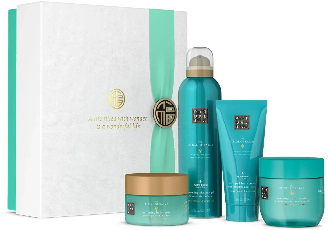 keine Angabe 1-3 Werktage Lieferzeit in_stockRITUALS Rituale The-Ritual-Of-KarmaMedium Gift Set The Ritual of Karma 48h Hydrating Body Cream 100 ml + The Ritual of Karma Softening Body Scrub 125 gr. + The Ritual of Karma Foaming Shower Gel 200 ml + The Ritual of Karma Overnight Body Mask 125 ml 1 St