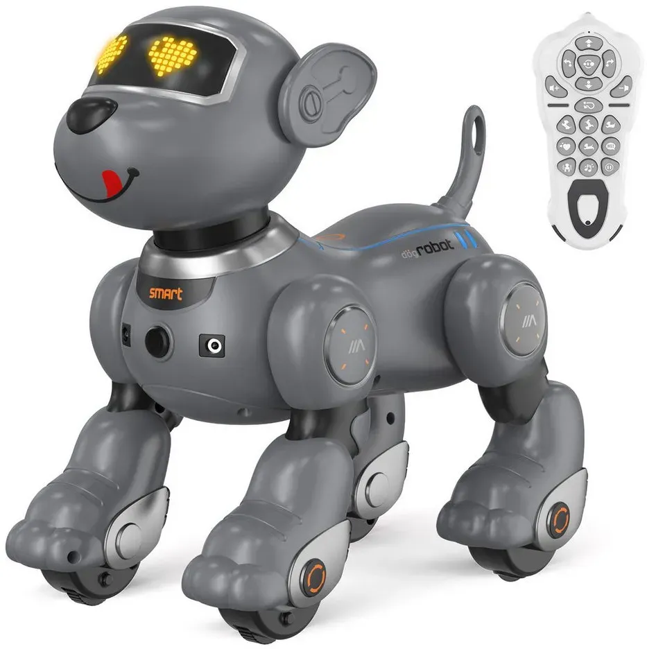 Fernbedienungsspielzeug Fernbedienung Roboter Gesamtsortiment Spielzeug Spielfahrzeuge Ferngesteuerte Fahrzeuge Ferngesteuertes für Kinder Spielzeuge - EAN:5905515355438 - Interaktiver ferngesteuerter Roboterhund Interaktiver, weisser Hund mit Fernbedienung - ein perfektes Spielzeug für kleine und grosse Liebhaber von Vierbeinern. Dieser entzückende Hund ahmt die Handlungen eines echten Hundes nach und sorgt so für interaktives und realistisches Spielen. Trotzdem benötigt ein interaktiver Hund nicht so viel Aufmerksamkeit wie echte Tiere und ist eine gute Alternative für Menschen mit einer Fellallergie. Der Hund kann Geräusche imitieren, bellen, sich bewegen, schlafen und rennen, wenn er gerufen wird. Seine Augen leuchten und das Lächeln auf seinem Gesicht verleiht ihm Charme und Freude. Dank des eingebauten Wassertanks über dem Schwanz können Sie den Effekt der Freisetzung von Gasen - Wasserdampf - aktivieren, was die Interaktion mit dem Hund noch realistischer macht. Das Set enthält einen interaktiven Hund, eine Fernbedienung, eine Bedienungsanleitung und eine Flasche zum Nachfüllen des Wassers im Tank. Alle Elemente sind einfach zu bedienen und die Anleitung hilft Ihnen dabei, die Funktionen des Hundes vollständig zu nutzen. Dieses Set ist für Kinder ab n sicher. Das Spielen mit einem interaktiven ferngesteuerten Hund fördert Kreativität, Einfühlungsvermögen und die Fähigkeit, sich um Tiere zu kümmern. Die Interaktion mit einem Hund stärkt das Verantwortungsbewusstsein ... Der VEVOR Roboter Hund ist ein programmierbares, intelligentes und interaktives RC-Hundespielzeug mit Folgefunktion, Berührungs- und Sprachsteuerung. ![]() ![]() VEVOR Roboter Hund Ferngesteuerter Spielzeug, 2,4 GHz, programmierbares intelligentes interaktives RC Hund für Kinder mit Folgefunktion, Berührungs- und Sprachsteuerung, für Kinder ab 3 Jahren