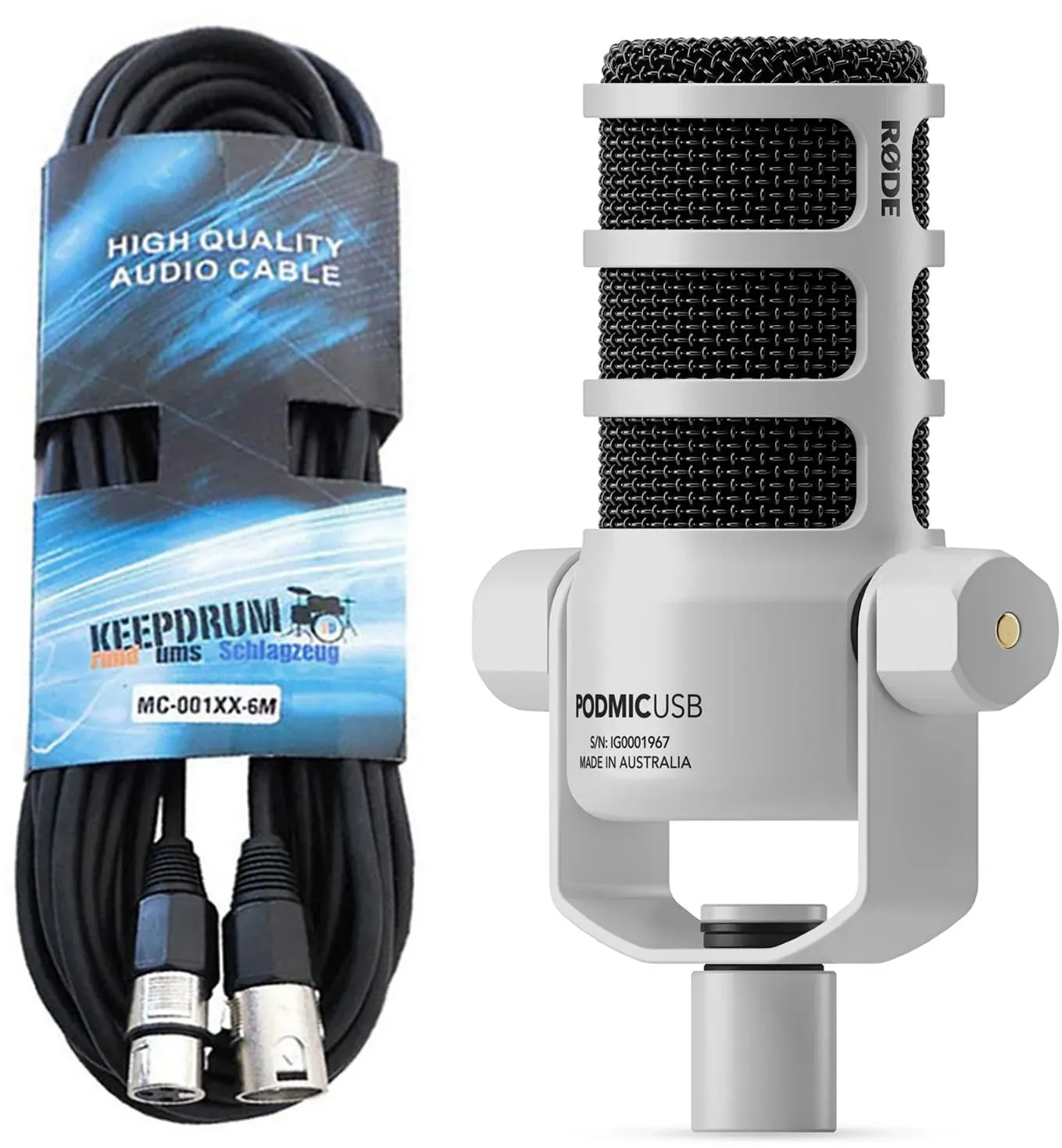 Zubehr Mobile Kommunikation Mikrofone - EAN:0698813010707 - - gefunden von Kelkoo Dieses Set bietet das Rode PodMic USB in Weiß zusammen mit einem keepdrum MS138 Gelenkarm-Stativ, was eine praktische Lösung für den sofortigen Einsatz darstellt. ![]() ![]() RÃDE Microphones Rode Podmic USB XLR Dynamisches Sprecher-Mikrofon Weiss mit keepdrum MS138 Gelenkarm-Stativ