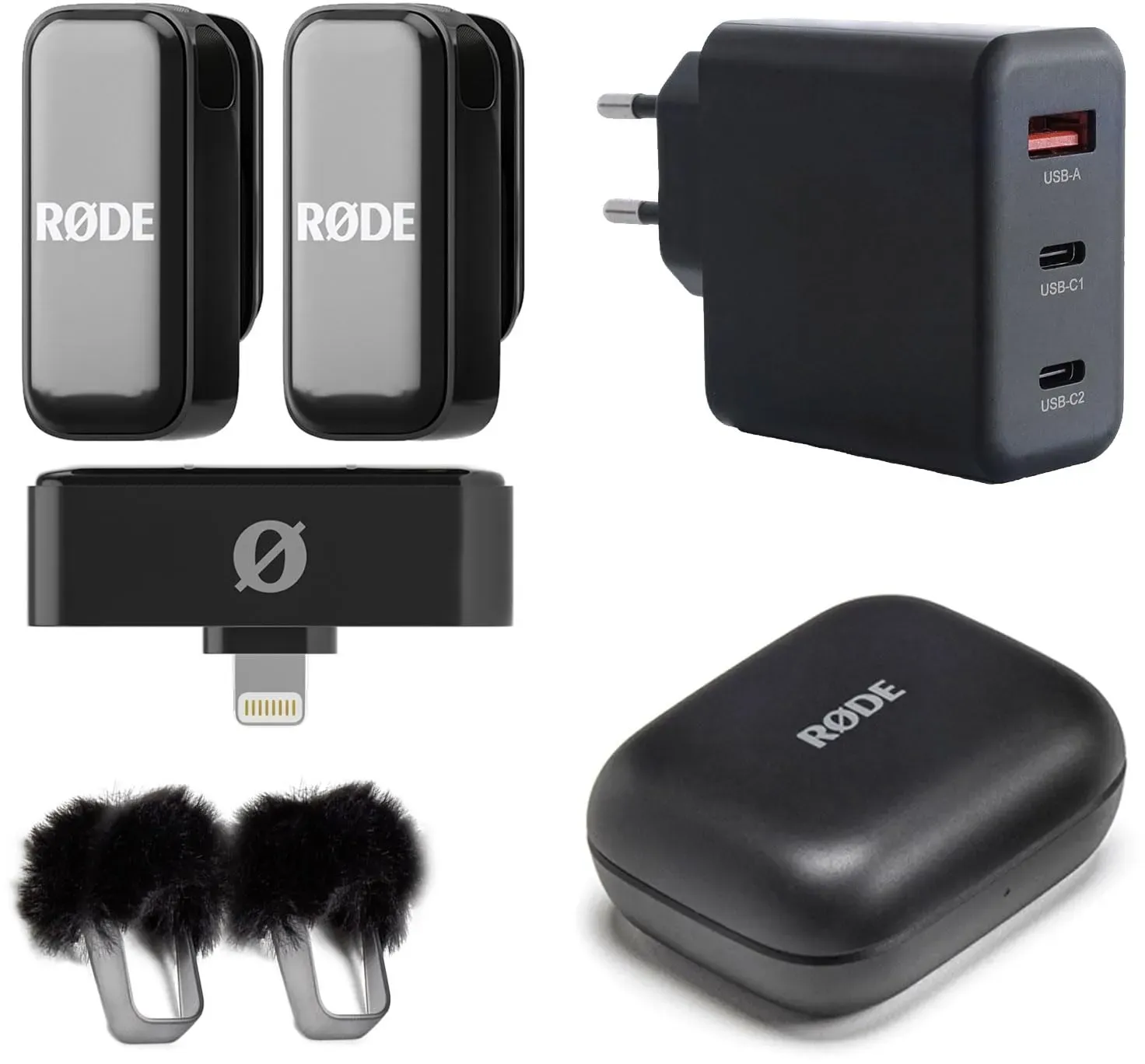 Kategorie: Mikrofone - R DE Microphones - GTIN:4251073876672 - Drahtlos-Mikrofonsystem für Smartphones mit USB-Type-C Einfachste Bedienung Plug and Play / Ultra-kompaktes Komplettsystem Module koppeln automatisch / Reichweite bis zu 100 m Kristallklare Audioqualität / Akkulaufzeit bis zu 7 Stunden + keepdrum Multi-USB-Netzteil Fast-Charger - 121,90 Euro bei Amazon Marketplace CE - gefunden von billiger.de Dieses Rode Wireless Micro Lightning mit Netzteil ist praktisch für längere Aufnahmen, da es eine konstante Stromversorgung gewährleistet. ![]() ![]() R DE Microphones Rode Wireless Micro Drahtloses Mikrofon-System Light-ning mit keepdrum Netzteil