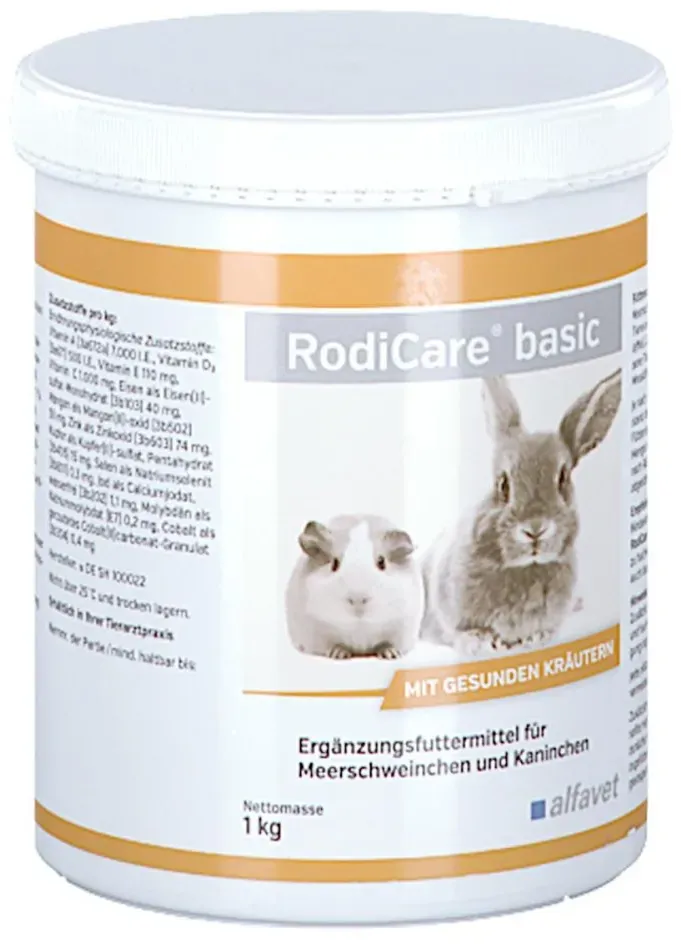 Rodicare basic META PreisvergleichMit dem Meta-Preisvergleich suchen Sie gleichzeitig bei den großen Preisvergleich Portalen!Jetzt live Suche nach rodicare basic starten! Rodicare basic KaufberatungRodiCare basic ist ein speziell entwickeltes Ergänzungsfuttermittel in Pelletform für Meerschweinchen und Kaninchen, das vor allem zur Regulierung von Verdauungsstörungen dient. Es zeichnet sich durch einen sehr hohen Rohfaseranteil aus, der die Darmflora unterstützt, die Verdauung fördert und eine gleichmäßige Abnutzung der Zähne gewährleistet. Zudem enthält es alle lebensnotwendigen Vitamine und Mineralien, insbesondere einen hohen Vitamin-C-Gehalt, der auch bei vorübergehendem Verzicht auf Frischfutter eine ausreichende Versorgung sicherstellt[1][2][3][4][5]. Wichtige Produktmerkmale von RodiCare basic sind: