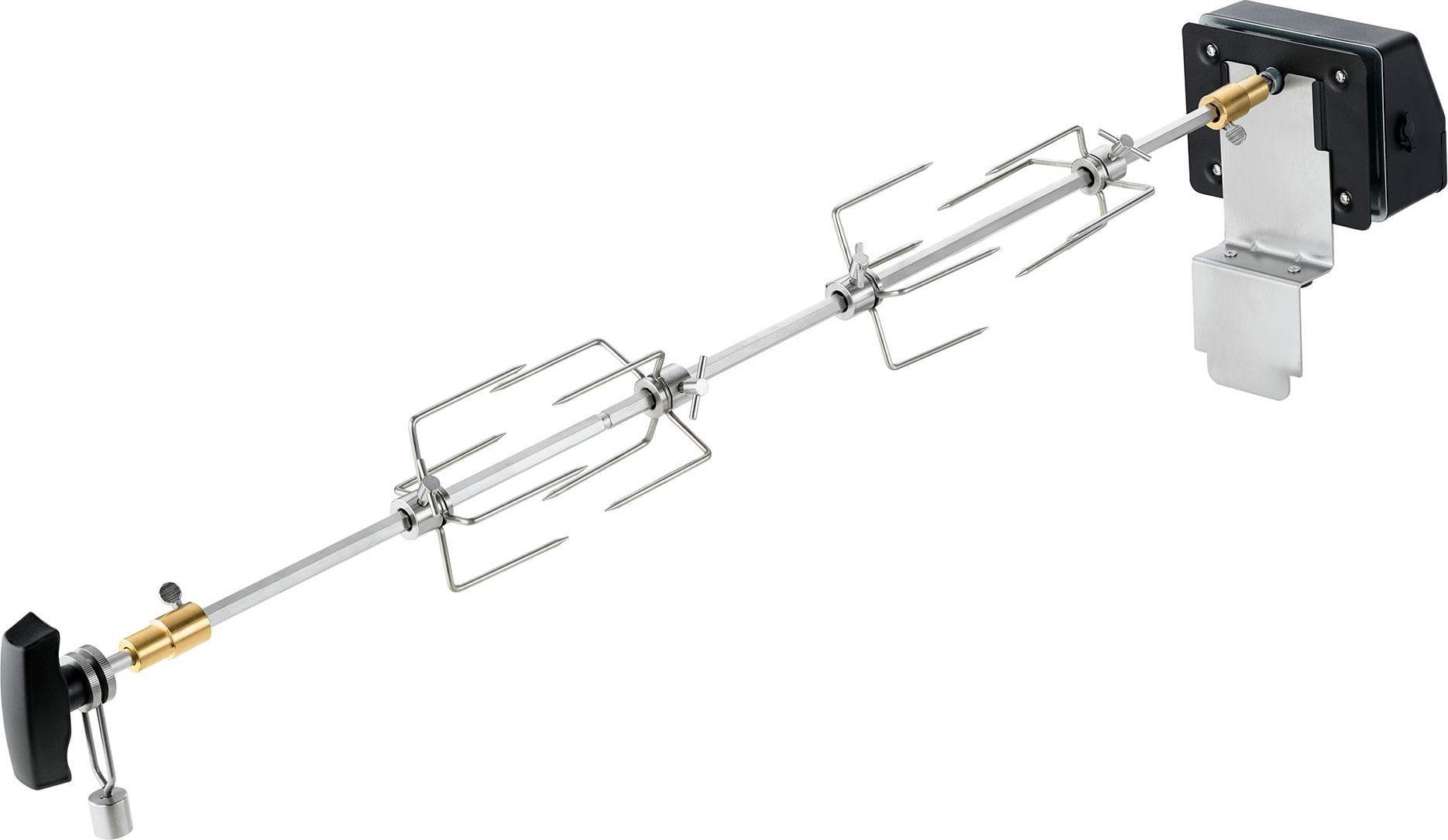 EAN: 4068047002346 - Rösle - Grillspieße - Blazeflame Drehspieß - Langsame Drehgeschwindigkeit von ca. 3U/min verteilt den Bratensaft gleichmäßig - Massiver Sechskantspieß aus Edelstahl - äußerst robust und bis zu 10 kg belastbar - 4 massive Fleischhalterungen, die sich ideal zum Aufspießen von Hähnchen, Braten, Gyros etc. eignen - Keine Steckdose in der Nähe? Der leistungsstarke Elektromoter kann jederzeit von Netzbetrieb auf Batteriebetrib ( mit 2x D / Monozellen) umgestellt werden - Geeignet für alle BLAZEFLAME Modelle - Magnetische Motorhalterung für einfache Montage - Inklusive Netzteil 220V/50 Hz - bei kaufland.de - aus Yadore Produktdaten ![]() ![]()