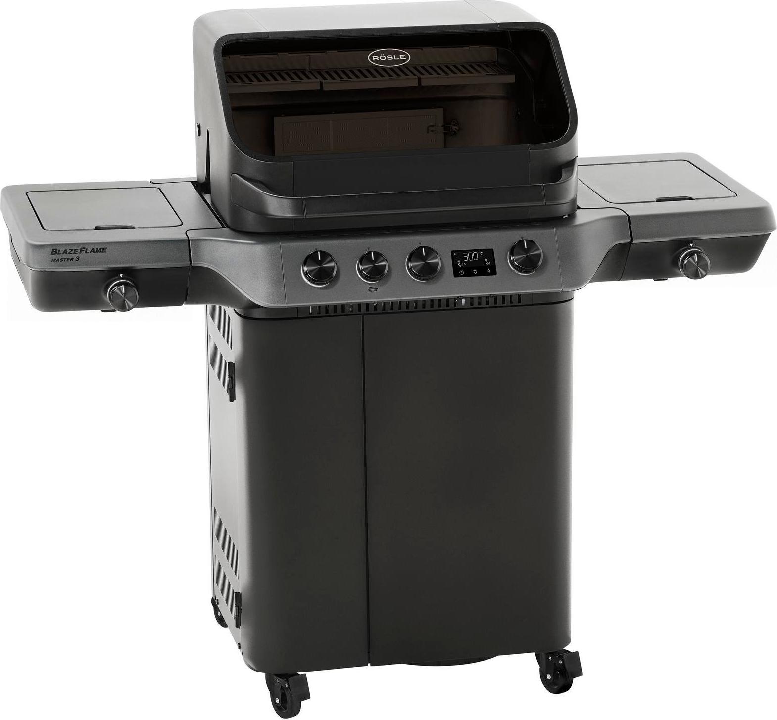 Kategorie: Grills - Rösle - GTIN:4004293256003 - Drei leistungsstarke Edelstahlbrenner sorgen für gleichmäßige Hitzeverteilung beim Grillen Grillfläche von 60 x 48 cm für vielseitige Grillanwendungen im Alltag Warmhalterost mit 55,5 x 14 cm Fläche zum Zwischenlagern von fertigem Grillgut Infrarot-Keramik-Backburner mit 3,6 kW Leis... - 2499,00 Euro bei lax-online.de - gefunden von billiger.de ![]() ![]() Rösle BLAZEFLAME Master 3 Gasgrill