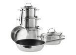 Kategorie: Töpfe - Rösle - GTIN:4004293131416 - Was fürs Auge: Rösle Topfset 5-tlg. 'ELEGANCE'. Haben Sie die Nase voll von zusammengewürfeltem Kochgeschirr? Dann setzen Sie mit dem Rösle Topfset 5-tlg. 'ELEGANCE' aufs richtige Pferd. Das fünfteilige Set bietet Ihnen bei einem Gesamtgewicht von 7,1 kg alles, was Ihr Kochherz begehrt. Es besteht aus silberfarbenem Edelstahl mit formschönen Griffen aus demselben Material und ist sowohl für den Backofen als auch alle Herdarten geeignet. Vier passende Glasdeckel ermöglichen das Sichtkochen. Sie erhalten neben einer Stielkasserolle drei verschieden große Kochtöpfe sowie einen hochwandigen Bratentopf. Werden Sie in der Küche kreativ mit dem Rösle Topfset 5-tlg. 'ELEGANCE'! - 99,99 Euro bei Zurbrüggen Wohn-Zentrum - gefunden von billiger.de ![]() ![]() Rösle Topfset 6-tlg.ELEGANCE - B/H/T ca. 64,50x29,00x39,00