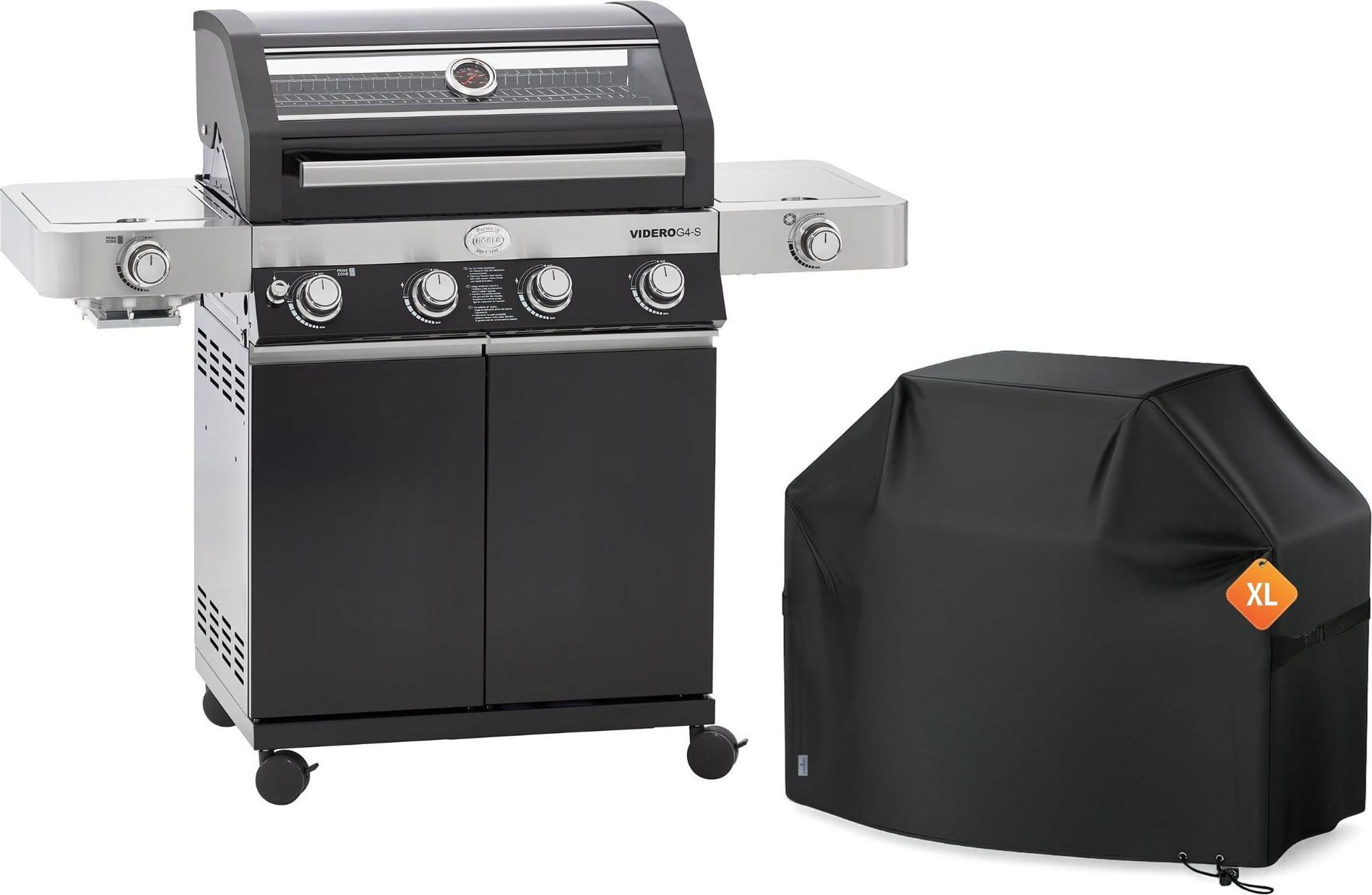 lieferbar-in 5-6 Werktagen bei dirRöSLE Gasgrill RöSLE BBQ Gasgrill Videro G4-S Vario+ Schwarz mit Schutzhaube XL