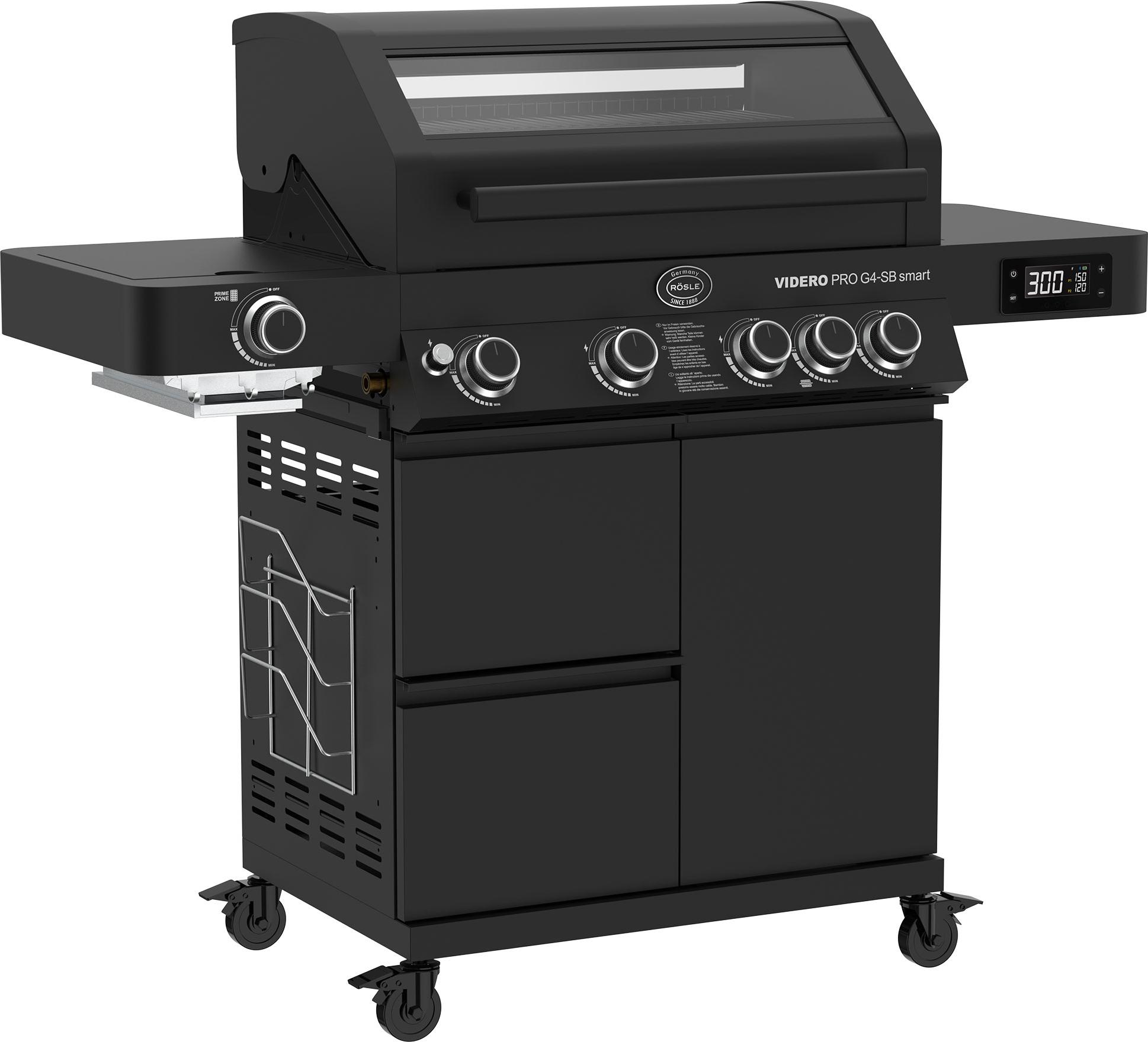 lieferbar-in 7-9 Werktagen bei dirRöSLE Gasgrill BBQ-Station VIDERO, 25524, G4-S Schwarz, 4 Brenner, extra Primezone und Seitenbrenner, VARIO+ schwarz