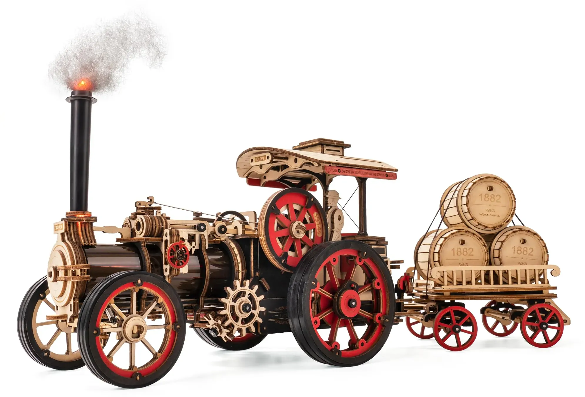 Auf Lager Versand durch AmazonROKR 3D Holzpuzzle Auto Modell Erwachsene Oldtimer - Dampftraktor Dampflokomotive Dampfloks-STEM Schreibtischdekoration Vatertagsgeschenk für papa