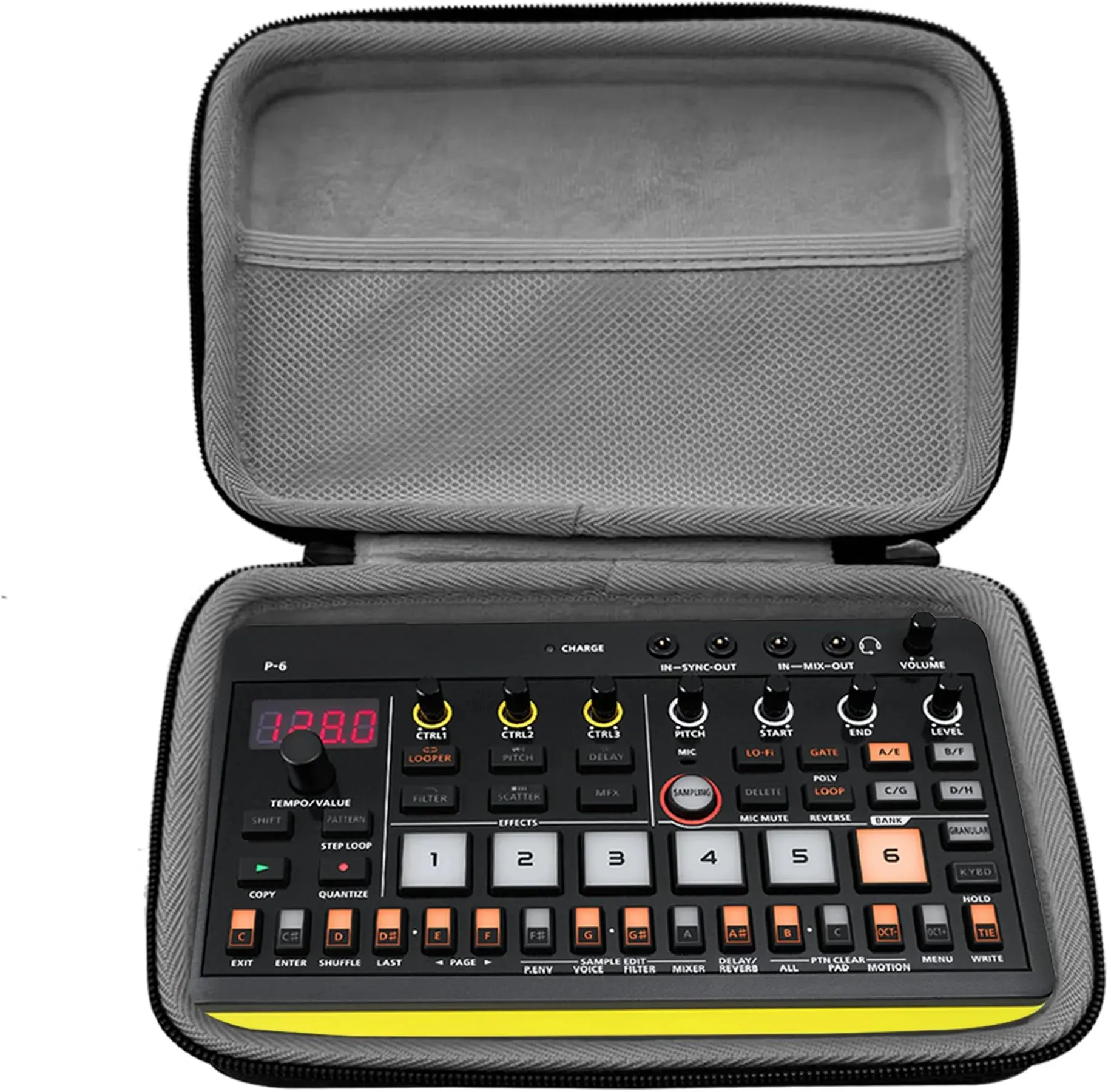 Auf Lager Versand durch AmazonMusiin Sampler Synthesizer-Hülle, kompatibel mit Roland AIRA Compact P-6, S-1, T-8, J-6, E-4. Design mit Zwei Reißverschlüssen, Netztaschen und Samtfutter, tragbare Aufbewahrungstasche (grau)