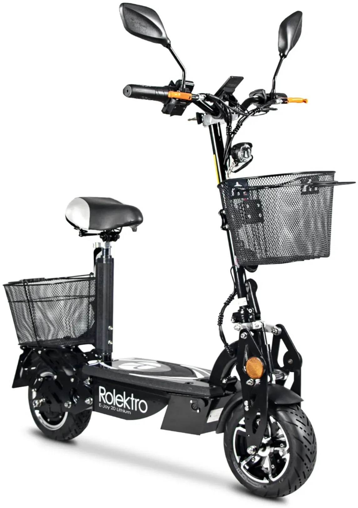 6 Händlerangebote bei billiger.de - Kategorie: E-Scooter - Rolektro - Lieferzeit 7 Werktage Keine Versandkosten - der Preis ist inclusive Versand Der neue Elektro-Scooter Rolektro E-Joy 20 ist ein umweltfreundliches, faltbares und damit auch im Auto transportables Fahrzeug auf 2-Rädern.Dieser robuste E-Scooter für Erwachsene ist ein leises, sicheres und kostengünstiges Fahrzeug für den Nah- und Mittelbereich!Das Zweirad vereinbart Fahrsicherheit, Komfort und Fahrfreude auf einzigartige Weise!Der E-Joy 20 ist 20 km/h schnell und verfügt über einen kraftvollen 500 Watt Hinterrad- Nabenmotor. Durch Verwendung eines Radnabenmotors fällt die Verwendung von Verschleißteilen wie Kette und Ritzel weg.Dies spart nicht nur Geld, sondern sorgt auch für eine erhöhte Zuverlässigkeit und einen stärkeren Durchzug.Ausgestattet mit einer modernen und leichten 36V-20AH Lithium-Akkubox erreicht der faltbare, elektrische Roller eine Reichweite von bis zu 45 Km.Die Ladezeit des Akkus beträgt 4-6 Stunden, die Aufladung ist sowohl intern im E-Roller als auch extern möglich. Die Akku-Box ist herausnehmbar und kann auch in der Garage, Wohnung, Haus etc. geladen werden.Der Elektroroller mit Straßenzulassung kann auch im Regen gefahren werden, da es Spritzwassergeschützt ist!STARKE AUSTATTUNGDer kleine e-Scooter wird voll ausgestattet geliefert - mit zwei Körben, Handyhalterung, Akku-Box, und Ladegerät!LED-BeleuchtungDas hochwertige LED-Licht verbraucht minimal Strom und sorgt für gut beleuchtete Wege ... ![]() ![]() Rolektro, E-Joy Elektro-Scooter 20 Lithium, Schwarz, 36V-20AH Akku, 500 Watt