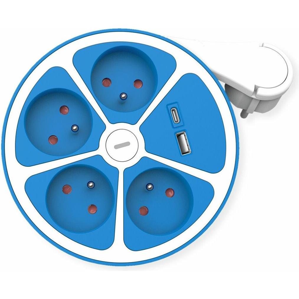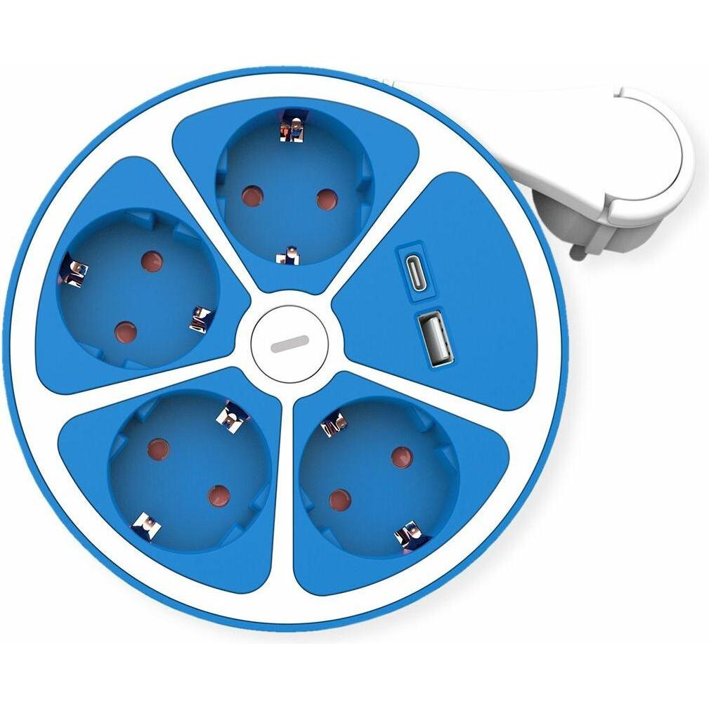 lieferbar-in 2-3 Werktagen bei dirROLINE 4-fach Steckdosenleiste mit Schalter, rund Steckdosenleiste (Kabellänge 1.5 m), USB-Charger A+C blau