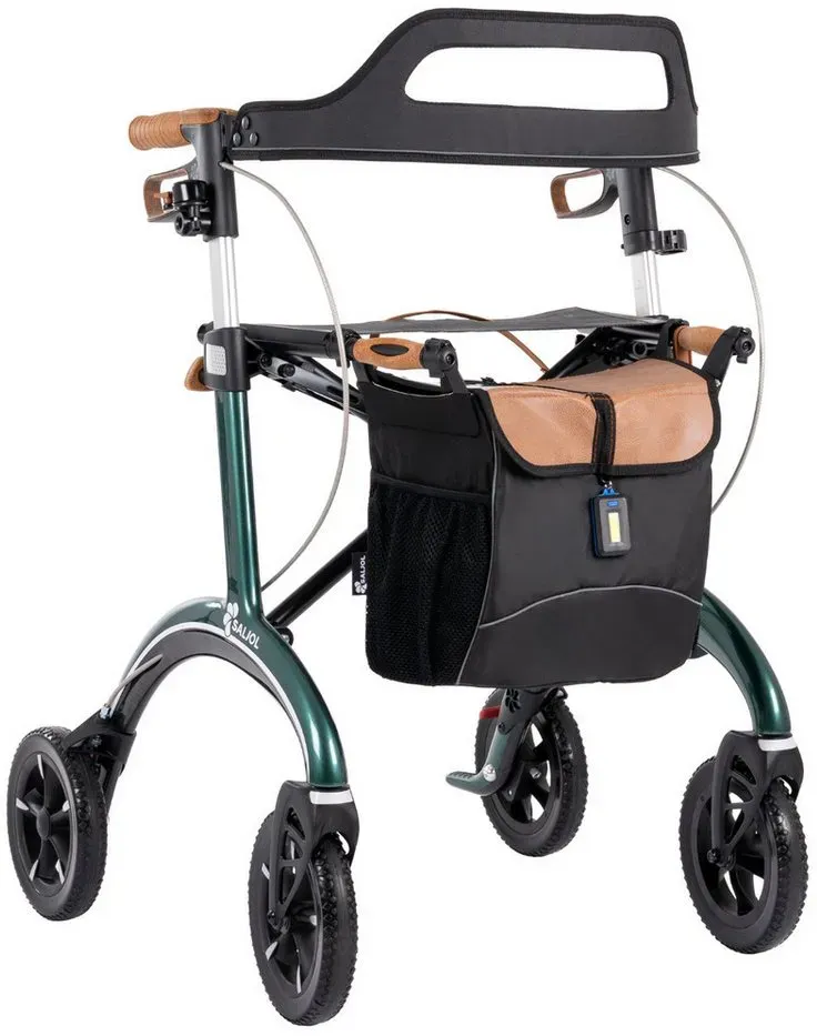 lieferbar-in 2-3 Werktagen bei dirSaljol Rollator Saljol Carbon Rollator mit Vollausstattung Farbe: British Racing Green, inkl. Stockhalter & Rückengurt, Klingel, Tasche & Led-Licht grün