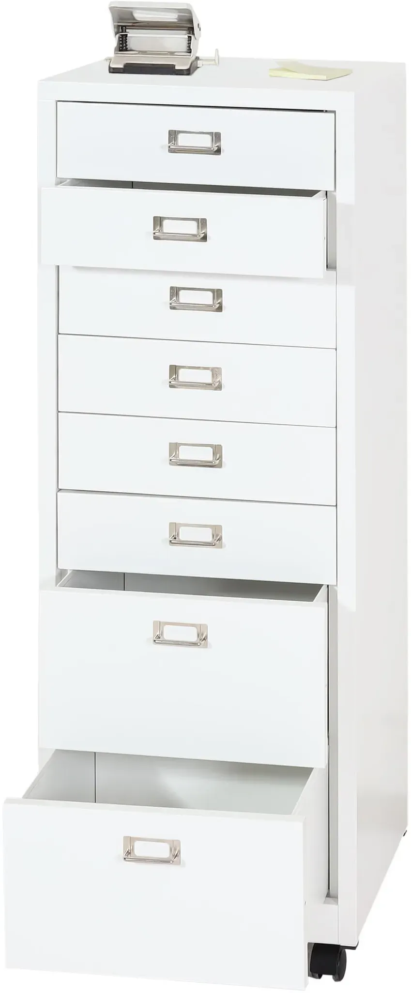 Rollcontainer hwc-l49 weiß 8 META PreisvergleichMit dem Meta-Preisvergleich suchen Sie gleichzeitig bei den großen Preisvergleich Portalen!Jetzt live Suche nach rollcontainer hwc-l49 weiß 8 starten! Rollcontainer hwc-l49 weiß 8 KaufberatungDer Rollcontainer HWC-L49 in Weiß ist ein mobiler Schubladenschrank aus robustem, kaltgewalztem Stahl, der sich ideal für Büro oder Arbeitszimmer eignet. Er ist in zwei Varianten mit 4 oder 8 Schubladen erhältlich, wobei die 8-Schubladen-Version mit den Maßen ca. 115 x 40 x 41 cm (H x B x T) und die 4-Schubladen-Version ca. 55 x 40 x 41 cm misst. Beide Varianten verfügen über Vollauszüge, Haltegriffe, Etikettenhalter und vier Laufrollen, von denen zwei feststellbar sind. Die pulverbeschichtete Oberfläche schützt vor Kratzern und Abnutzung[1][2][3][5][7][9][13]. Wichtige Produktmerkmale und Beliebtheit:
