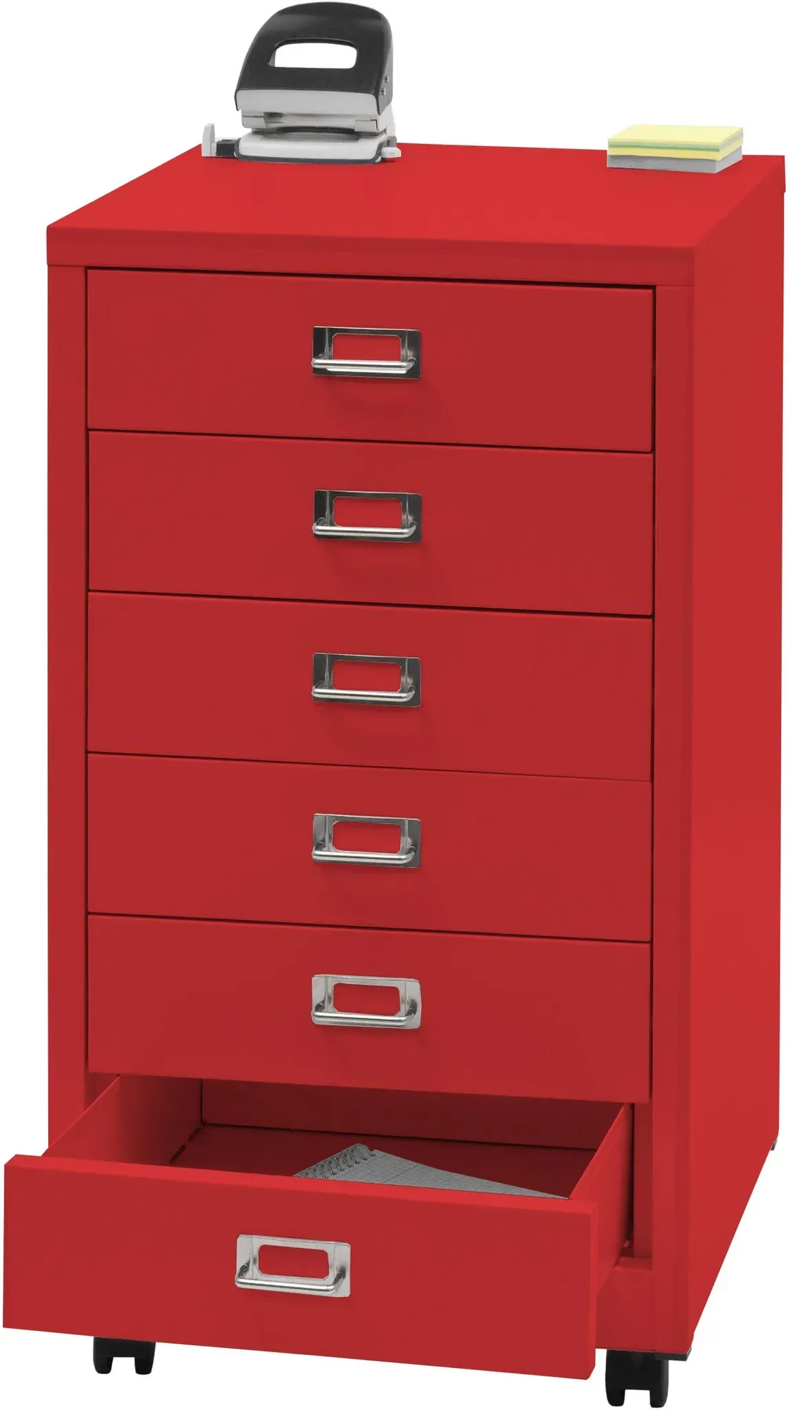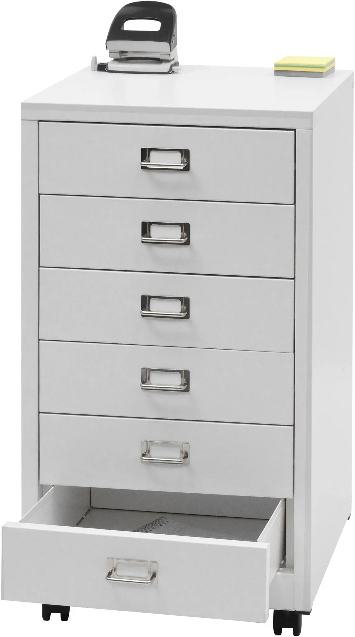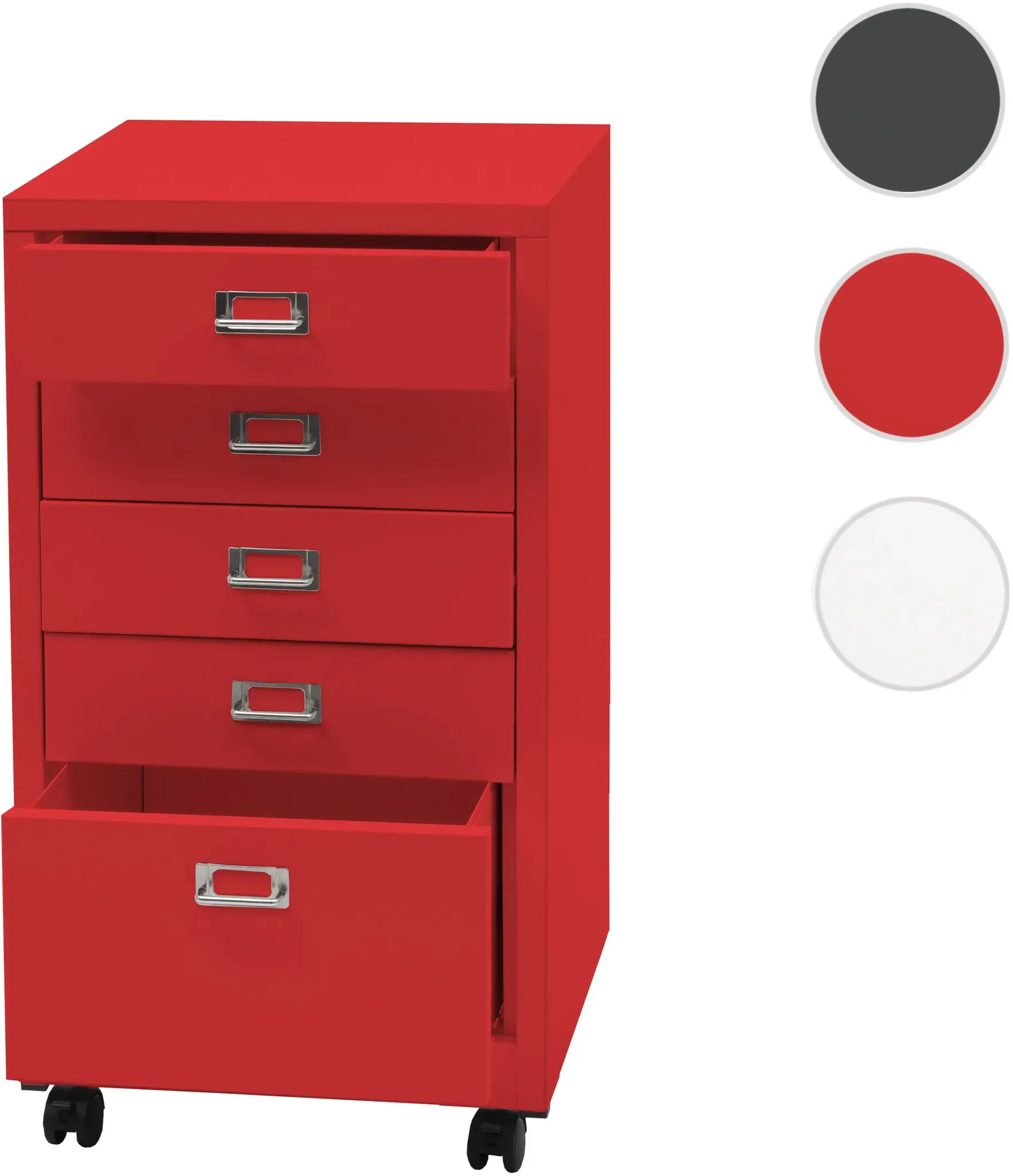 Kategorie: Büroschränke - Mendler - GTIN:4057651801575 - - 6 geräumige Schubladen mit Haltegriffen - Schubladen mit Vollauszug - Mit Etikettenhalter - Vier Laufrollen (zwei feststellbar) - Metallstärke: 0,6 mm - Dieser schlichte Bürocontainer darf in Ihrem Arbeitszimmer nicht fehlen. Die sechs Schubladen aus Stahl bieten ausreichend Platz für beispielsweise Büroutensilien, Computerzubehör und Dokumente, die nichts auf Ihrem Schreibtisch zu suchen haben. - Durch diesen praktischen Rollschrank schaffen Sie Ordnung und können sich voll und ganz auf Ihre Arbeit konzentrieren. Zudem ist dieser Schrank mit vier Laufrollen ausgestattet, wodurch er sich je nach Ihren Räumlichkeiten ganz einfach integrieren lässt. Maße (HxBxT) (ca.): Gesamt: 75x40x41 cm Innenmaß Schubladen: 10x32x36 cm Gesamtgewicht (ca.): 21 kg Material: Rahmen: kaltgewalzter Stahl Rollen: Kunststoff Oberflächenbehandlung: pulverbeschichtet Dieser Rollcontainer ist ein hochwertiger Schubladenschrank aus robustem Stahl, der sich perfekt für den Einsatz in Büros, Werkstätten oder anderen Arbeitsumgebungen eignet. Der Schrank verfügt über sechs geräumige Schubladen, die mit einem Vollauszug ausgestattet sind, um den vollen Zugriff auf den Inhalt der Schubladen zu gewährleisten. Die Schubladen sind mit Haltegriffen versehen, um ein einfaches öffnen und Schließen zu ermöglichen, während der Etikettenhalter mitgeliefert wird, damit Sie Ihre Schubladen nach Bedarf beschriften und organisieren können. Der Rollcontainer ... Für alle, die einen Farbakzent setzen möchten, ist dieser rote Rollcontainer mit 5 Schubladen eine stilvolle und praktische Wahl. ![]() ![]() Mendler Rollcontainer HWC-L49, Schubladenschrank Stahlschrank Aktenschrank, Metall 75x40x41cm 5 Schubladen ~ rot