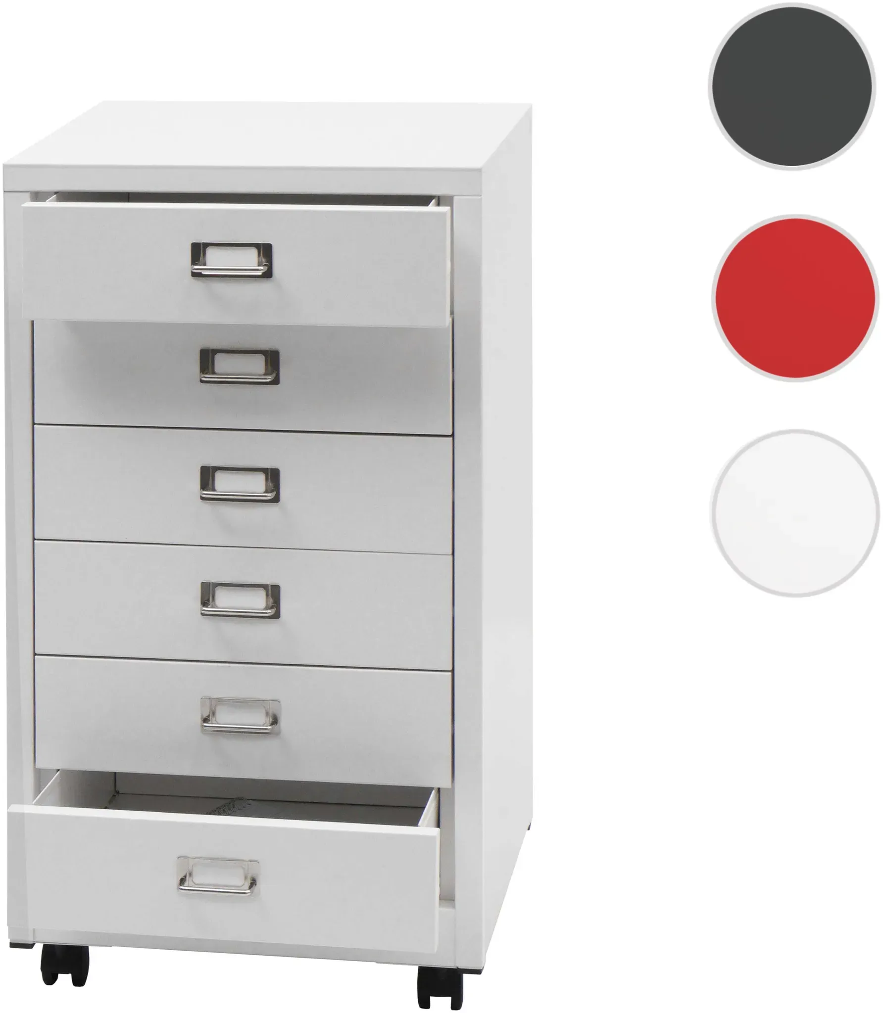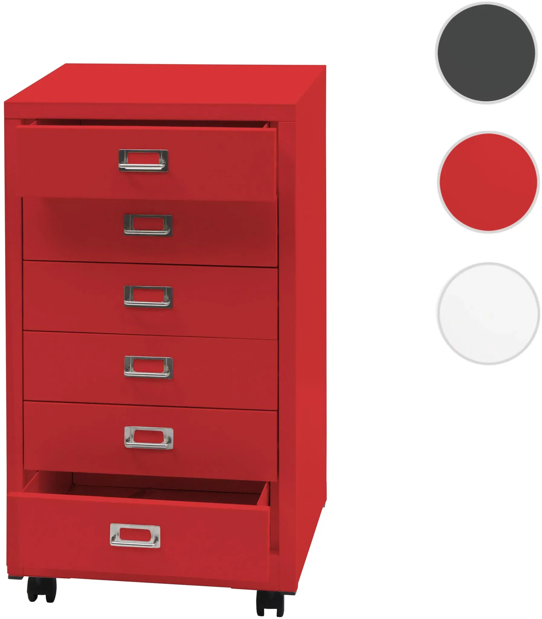 Kategorie: Büroschränke - Mendler - GTIN:4057651821467 - - 6 geräumige Schubladen mit Haltegriffen - Schubladen mit Vollauszug - Mit Etikettenhalter - Vier Laufrollen (zwei feststellbar) - Metallstärke: 0,6 mm - Dieser schlichte Bürocontainer darf in Ihrem Arbeitszimmer nicht fehlen. Die sechs Schubladen aus Stahl bieten ausreichend Platz für beispielsweise Büroutensilien, Computerzubehör und Dokumente, die nichts auf Ihrem Schreibtisch zu suchen haben. - Durch diesen praktischen Rollschrank schaffen Sie Ordnung und können sich voll und ganz auf Ihre Arbeit konzentrieren. Zudem ist dieser Schrank mit vier Laufrollen ausgestattet, wodurch er sich je nach Ihren Räumlichkeiten ganz einfach integrieren lässt. Maße (HxBxT) (ca.): Gesamt: 75x40x41 cm Innenmaß Schubladen: 10x32x36 cm Gesamtgewicht (ca.): 21 kg Material: Rahmen: kaltgewalzter Stahl Rollen: Kunststoff Oberflächenbehandlung: pulverbeschichtet Farbe: Feuerrot RAL 3000 Dieser Rollcontainer ist ein hochwertiger Schubladenschrank aus robustem Stahl, der sich perfekt für den Einsatz in Büros, Werkstätten oder anderen Arbeitsumgebungen eignet. Der Schrank verfügt über sechs geräumige Schubladen, die mit einem Vollauszug ausgestattet sind, um den vollen Zugriff auf den Inhalt der Schubladen zu gewährleisten. Die Schubladen sind mit Haltegriffen versehen, um ein einfaches öffnen und Schließen zu ermöglichen, während der Etikettenhalter mitgeliefert wird, damit Sie Ihre Schubladen nach Bedarf beschriften und organisieren ... Dieser weiße Rollcontainer mit 6 Schubladen bietet viel Platz und ist eine gute Wahl für alle, die Wert auf ein helles und aufgeräumtes Arbeitsumfeld legen. ![]() ![]() Mendler Rollcontainer HWC-L49, Schubladenschrank Stahlschrank Aktenschrank, Metall 75x40x41cm 6 Schubladen ~ weiß