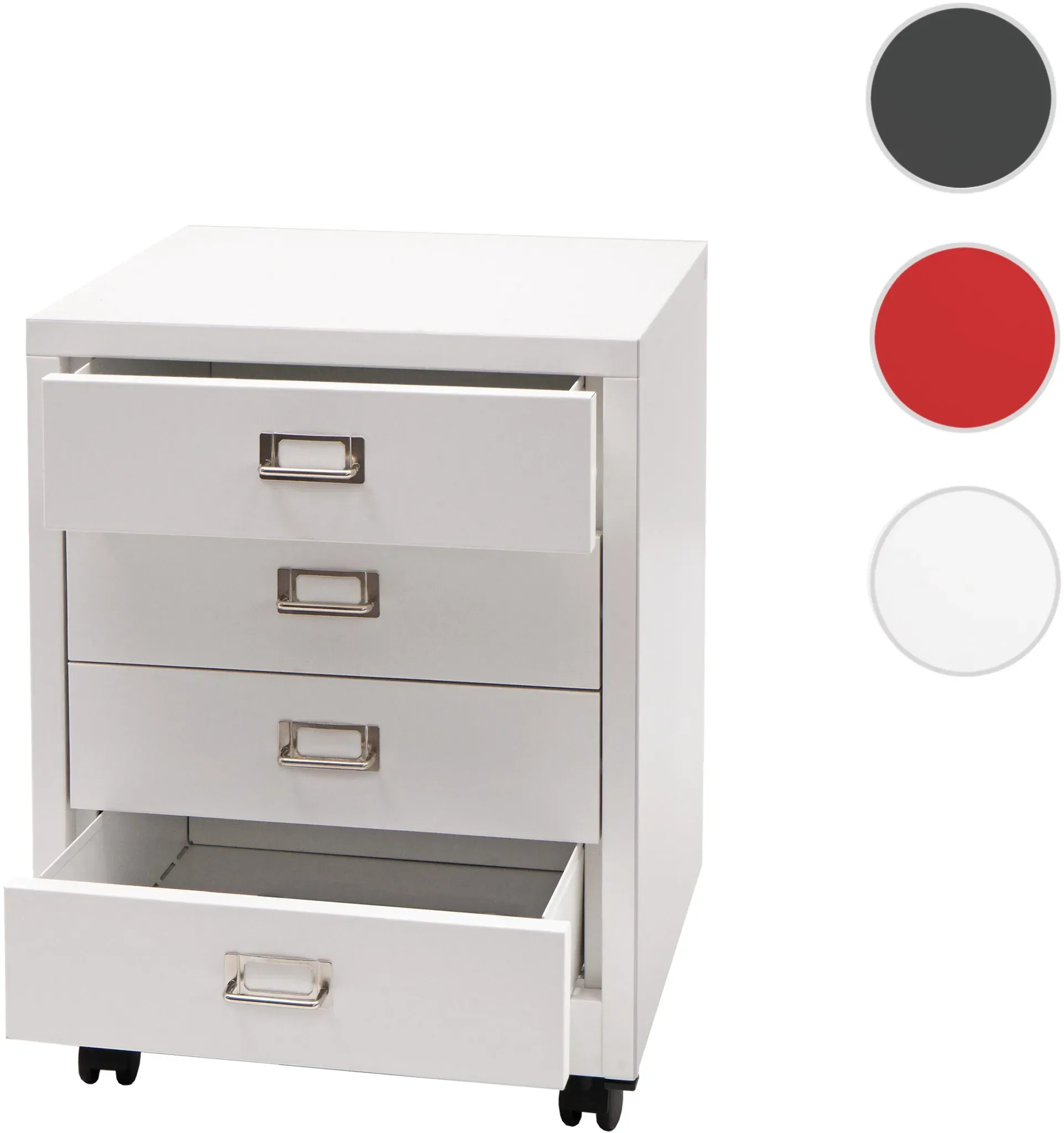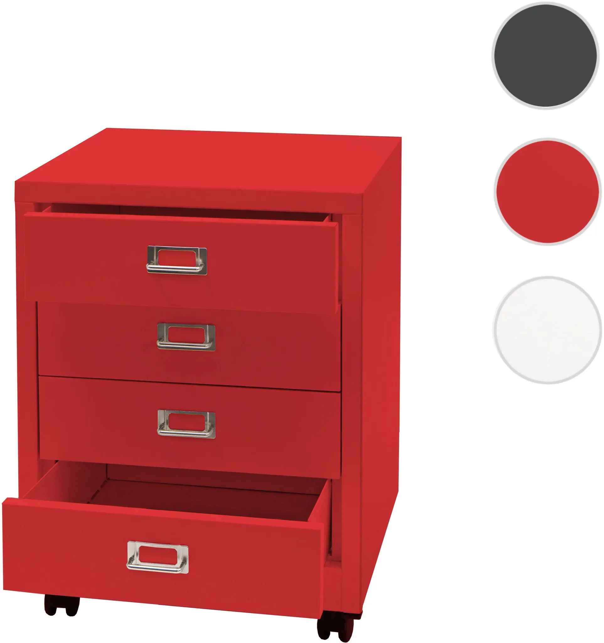 Kategorie: Büroschränke - Mendler - GTIN:4057651776149 - - 4 geräumige Schubladen mit Haltegriffen - Schubladen mit Vollauszug - Mit Etikettenhalter - Vier Laufrollen (zwei feststellbar) - Metallstärke: 0,6 mm - Dieser schlichte Bürocontainer darf in Ihrem Arbeitszimmer nicht fehlen. Die vier Schubladen aus Stahl bieten ausreichend Platz für beispielsweise Büroutensilien, Computerzubehör und Dokumente, die nichts auf Ihrem Schreibtisch zu suchen haben. - Durch diesen praktischen Rollschrank schaffen Sie Ordnung und können sich voll und ganz auf Ihre Arbeit konzentrieren. Zudem ist dieser Schrank mit vier Laufrollen ausgestattet, wodurch er sich je nach Ihren Räumlichkeiten ganz einfach integrieren lässt. Maße (HxBxT) (ca.): Gesamt: 55x40x41 cm Innenmaß Schubladen: 10x32x36 cm Gesamtgewicht (ca.): 16 kg Max. Dauerbelastbarkeit: obere Ablage 40 kg / Schublade 6 kg Material: Rahmen: kaltgewalzter Stahl Rollen: Kunststoff Oberflächenbehandlung: pulverbeschichtet Dieser Rollcontainer ist ein hochwertiger Schubladenschrank aus robustem Stahl, der sich perfekt für den Einsatz in Büros, Werkstätten oder anderen Arbeitsumgebungen eignet. Der Schrank verfügt über vier geräumige Schubladen, die mit einem Vollauszug ausgestattet sind, um den vollen Zugriff auf den Inhalt der Schubladen zu gewährleisten. Die Schubladen sind mit Haltegriffen versehen, um ein einfaches öffnen und Schließen zu ermöglichen, während der Etikettenhalter mitgeliefert wird, damit Sie Ihre Schubladen nach ... Dieser Rollcontainer ist eine preiswerte Option in Rot und bietet mit 4 Schubladen ausreichend Stauraum für den täglichen Bedarf. ![]() ![]() Mendler Rollcontainer HWC-L49, Schubladenschrank Stahlschrank Aktenschrank, Metall 55x40x41cm 4 Schubladen ~ rot