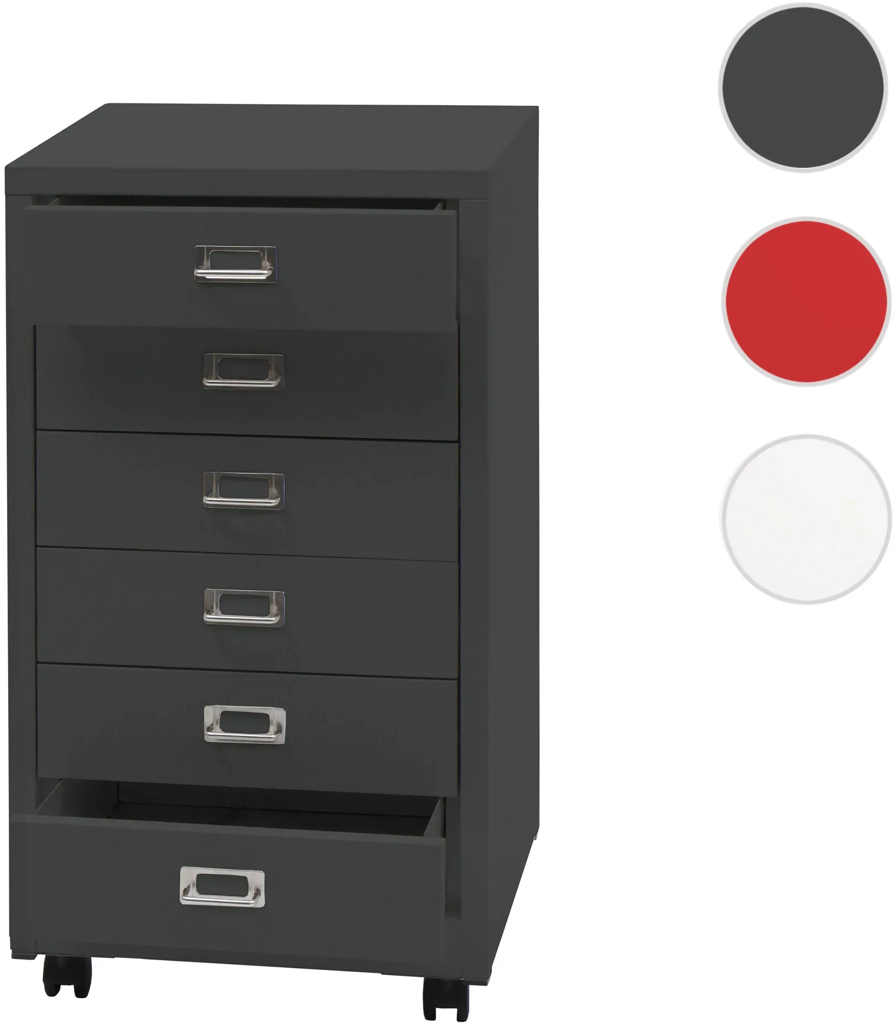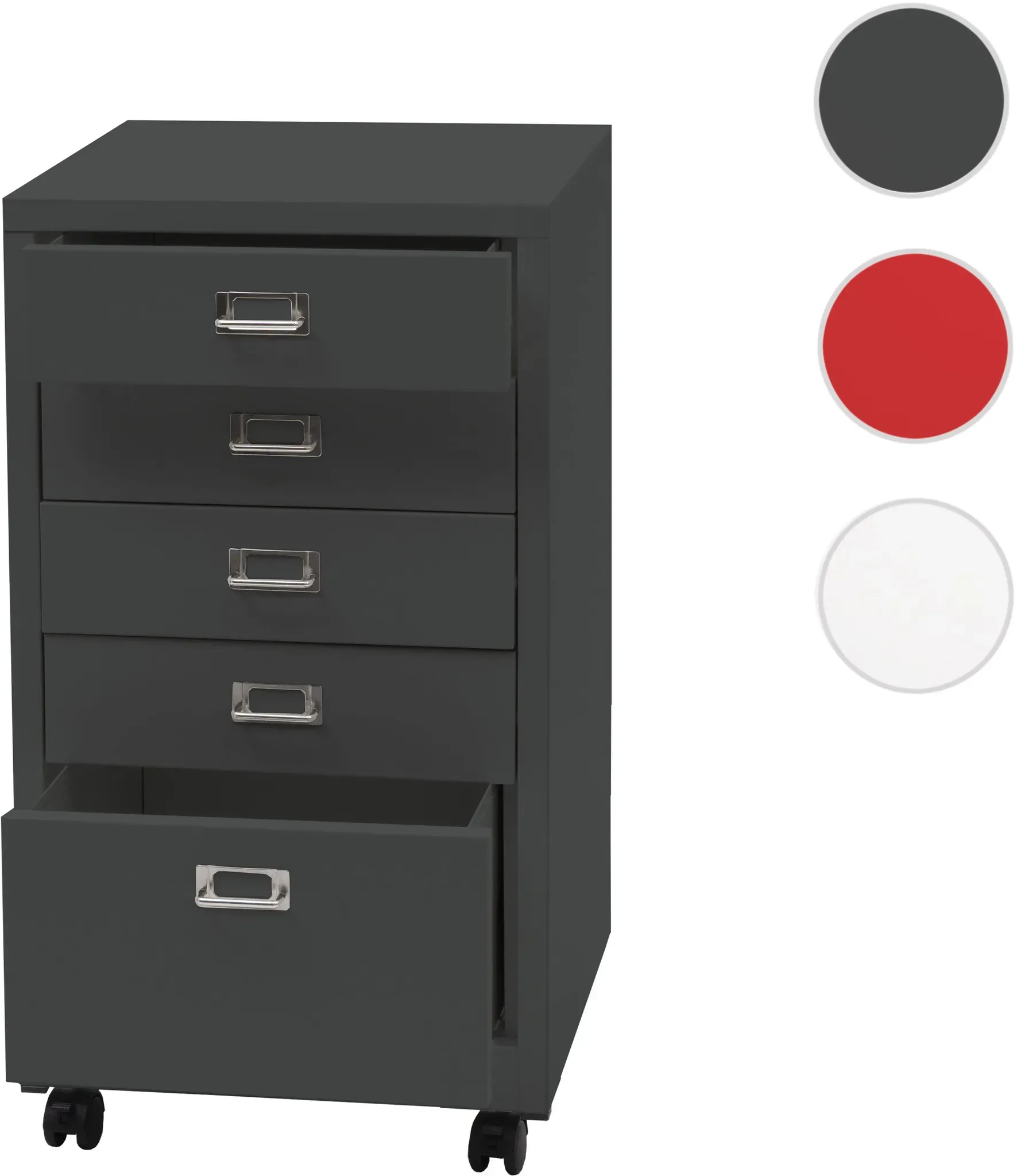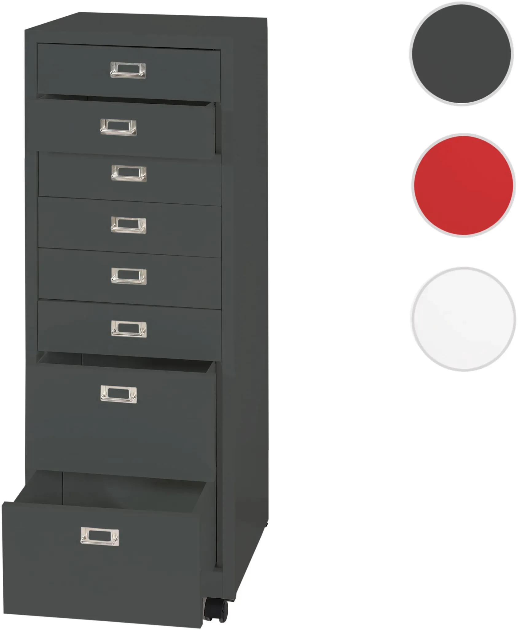 7-12 Werktage (SpeditionsversandMendler Rollcontainer HWC-L49, Schubladenschrank Stahlschrank Aktenschrank, Metall 115x40x41cm 8 Schubladen ~ dunkelgrau