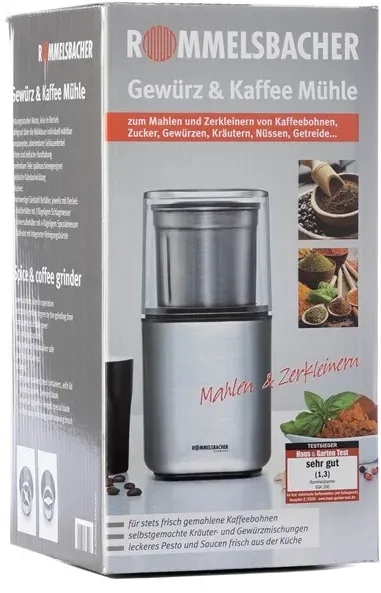 Kategorie: Kaffeemühlen - Rommelsbacher - GTIN:4001797865007 - Leistung: ca. 200 W, Mahlbehälter mit 2-flügeligem Edelstahl Schlagmesser Mahlgrad-Einstellung durch Steuerung der Betriebsdauer hochwertiges Edelstahl-Design und transparenter Deckel geeignet für Gewürze, Kaffeebohnen, Nüsse Inklusive: 2 auswechselbare Behälter aus Edelstahl - 36,90 Euro bei Cyberport - gefunden von billiger.de Ein solides eBay-Angebot, das die 2-in-1-Funktion hervorhebt und einen guten Mittelweg im Preisbereich darstellt. ![]() ![]() Rommelsbacher EGK - 200 2 eBay in 1 Kaffeemahlwerk Kaffeemühle Zerkleinerer Gewürzmühle