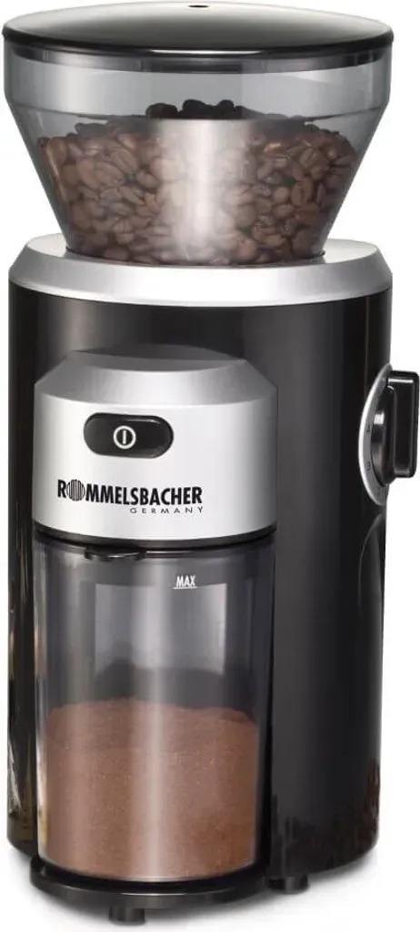 Zustand: Neu - Elektrische Kegelmühlen - Rommelsbacher - EKM 400 - EAN: 4001797864208 - hochwertiges, effektives und aromaschonendes Kegelmahlwerk aus Edelstahl, mit Blockierschutz, integrierte Antistatik-Funktion individuelle und flexible Nutzung: Mengendosierung bis 12 Portionen; Mahlen von 1 bis 2 Portionen direkt in einen Siebträger; elektronische Einstellung für individuelle Pulvermenge, Mahlgrad in 35 Stufen einstellbar, von fein (Espresso) bis grob (French Press) abnehmbarer, transparenter Bohnenbehälter mit Aroma-Schutzdeckel, automatisches Verschlusssystem, Füllmenge: 220 Gramm, herausnehmbarer Pulverauffangbehälter (130 g) mit Aroma-Verschluss großes LED-Display, Touch Control Sensoren, abnehmbare Halterung für Siebträger mit 60 mm Ø, modulares Mahlwerk für leichte Reinigung 5 Gummifüße für sicheren Stand, Kabelaufwicklung, Inklusive: Reinigungspinsel und Kaffeelot - bei Amazon.de ![]() ![]() ROMMELSBACHER Kaffeemühle EKM 300 - Kegelmahlwerk aus Edelstahl, Mahlgrad in 12 Stufen, Mengendosierung bis 10 Portionen, Füllmenge Bohnenbehälter 220 g, 150 Watt, schwarz/silber