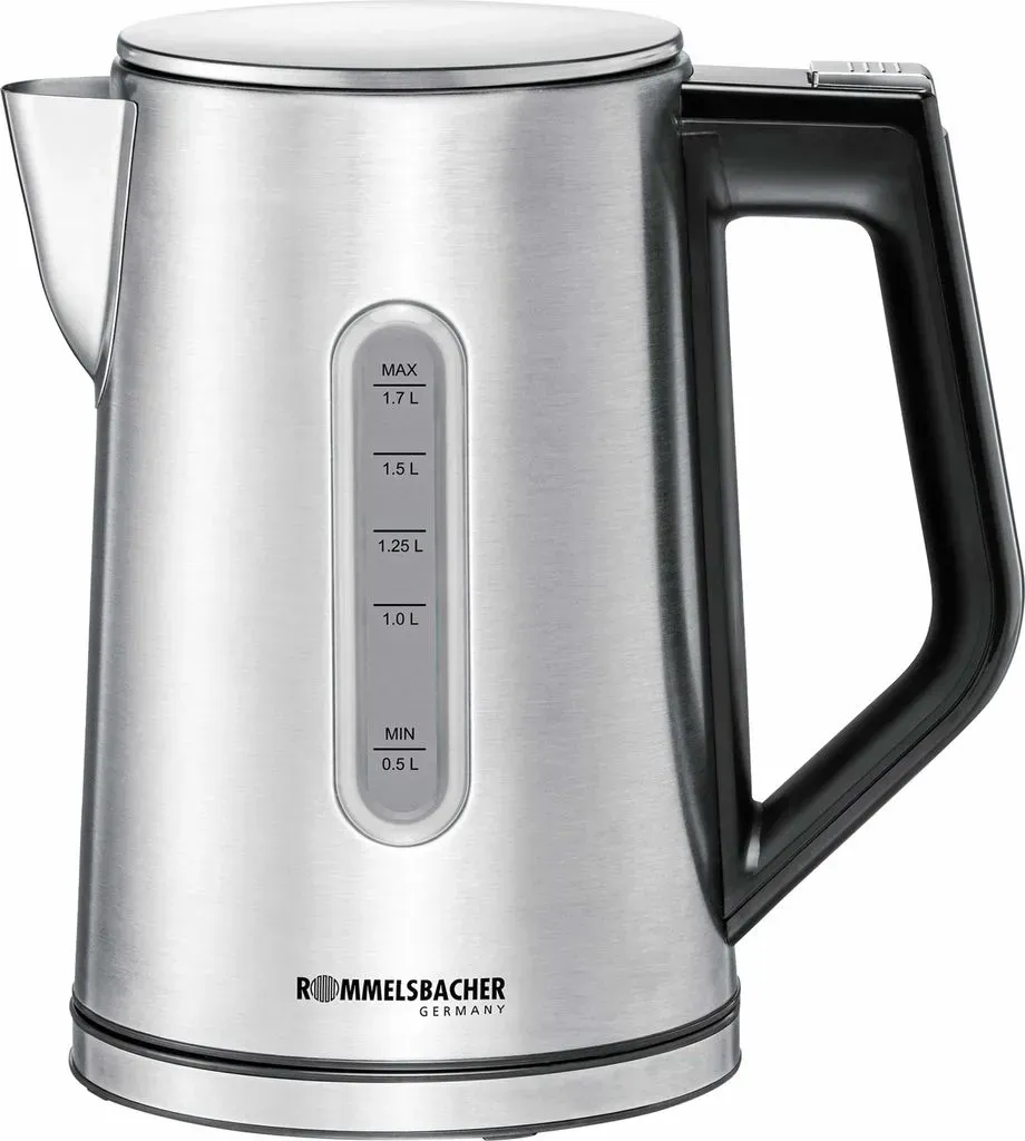 Wasserkocher - EAN:4001797881007 - Kein langes Warten auf ein Heißgetränk dank des Rommelsbacher Wasserkochers WK 3000 silber 1,7 l 3000 WKeine Küche oder Kantine ohne ein Gerät wie den Rommelsbacher Wasserkocher WK 3000 silber 1,7 l 3000 W. Er liefert kochend heißes Wasser für Heißgetränke oder Instant-Gerichte im Handumdrehen.Wichtige AusstattungsmerkmaleDie Füllstandsanzeige gibt Ihnen jederzeit Auskunft über die im Behälter befindliche Wassermenge. Dank eines besonders hohen Fassungsvermögens von 1,7 l haben Sie bei diesem 3000 W starken Modell innerhalb kürzester Zeit genügend kochend heißes Wasser zur Hand.Alles für Ihre SicherheitEin Trockengehschutz verhindert, dass das Gerät ohne eingefüllte Flüssigkeit eingeschaltet werden kann. Damit der Inhalt nicht ungewollt verdampft, hat das Produkt eine Abschaltautomatik. Das heißt, es wird, sobald das Wasser kocht, ausgeschaltet.Wie ist der Behälter beschaffen?Der Rommelsbacher Wasserkocher WK 3000 silber 1,7 l 3000 W ist aus Edelstahl gefertigt. Dieses Material sorgt dafür, dass er besonders widerstandsfähig und pflegeleicht ist. Und auch optisch bietet das Material einen schönen Gesamteindruck.Rund um den DeckelDer Behälter verfügt über einen Klappdeckel. Das bedeutet, dass sich der Deckel mit nur einer Hand öffnen lässt. Das erleichtert das Befüllen mit Wasser.Passt dieser Artikel zu Ihren Anforderungen?Sie erhalten das Produkt in der Farbe silber. Beim Kauf des Rommelsbacher Wasserkochers WK 3000 silber 1,7 l 3000 W ... Kaufland.de hat den Wasserkocher für 52.27 Euro im Angebot, was eine weitere attraktive Option von einem großen Einzelhändler darstellt. ![]() ![]() Rommelsbacher WK 3000 Wasserkocher 1,7 l 3000 W Schwarz, Edelstahl - Schwarz/Silber